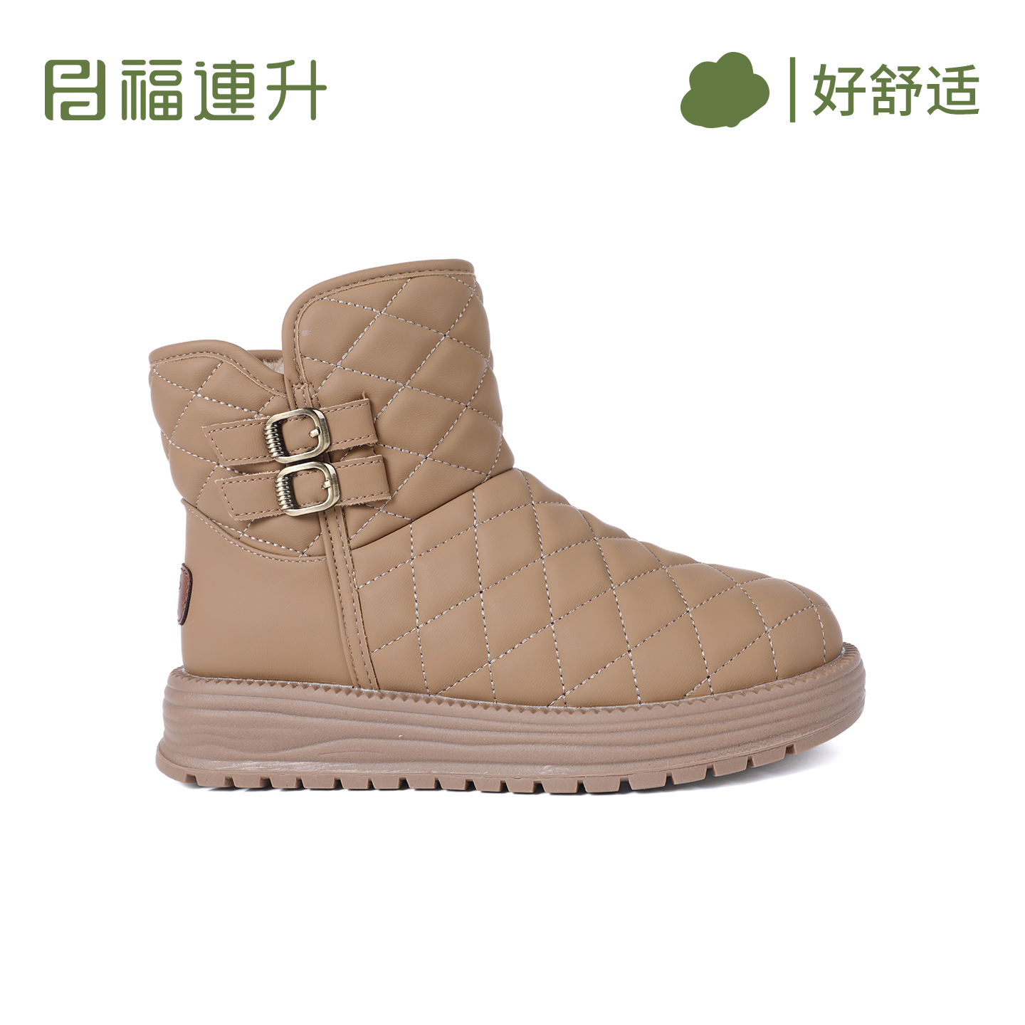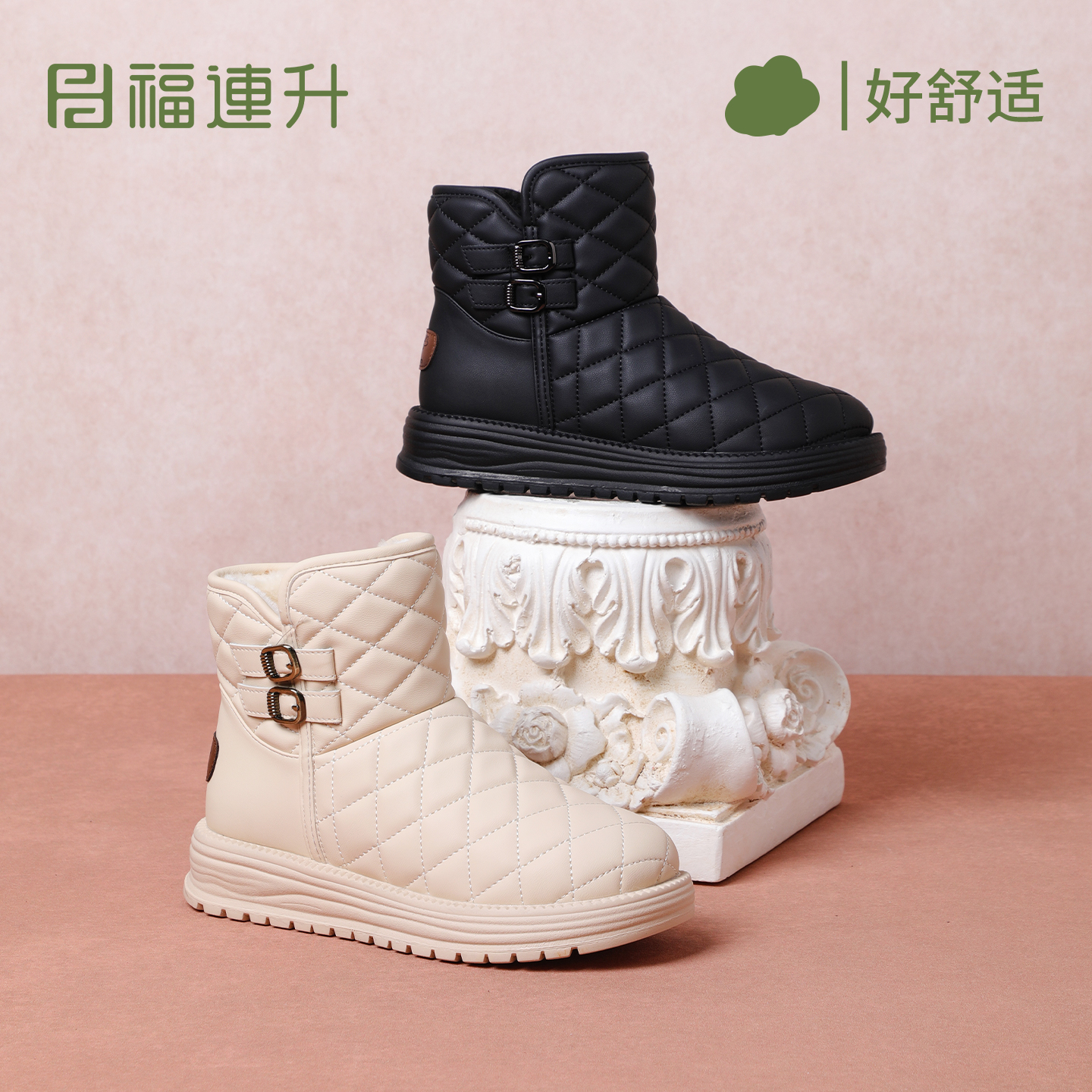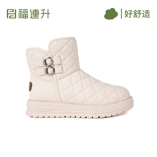 中短靴厚底防水防滑保暖 冬天2025新款 福连升雪地靴女款 加绒毛棉鞋