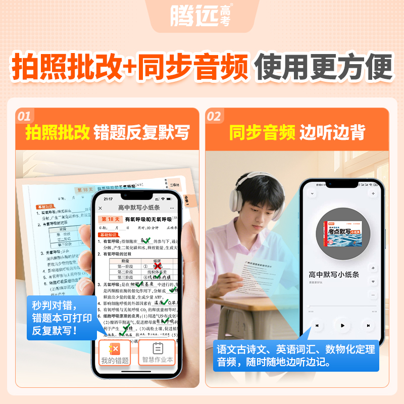 2026版 腾远高考高中语数英物化生考点默写小纸条同步教材10分钟轻松默写语文数学英语物理化学生物知识点清单大全总复习归纳总结书