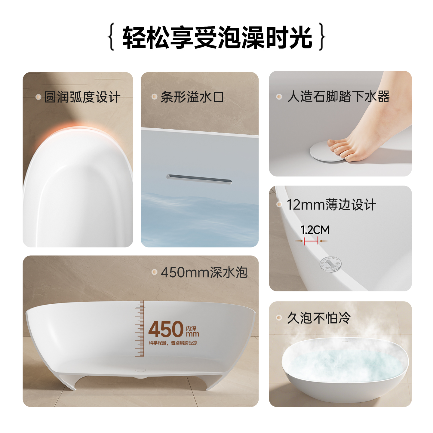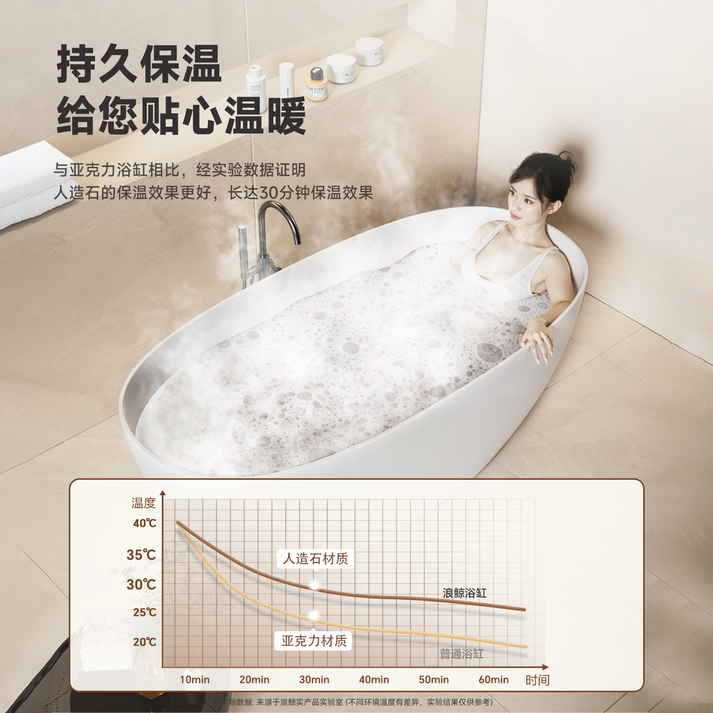人造石浴缸家用椭圆形0650 浪鲸一体独立式 新品