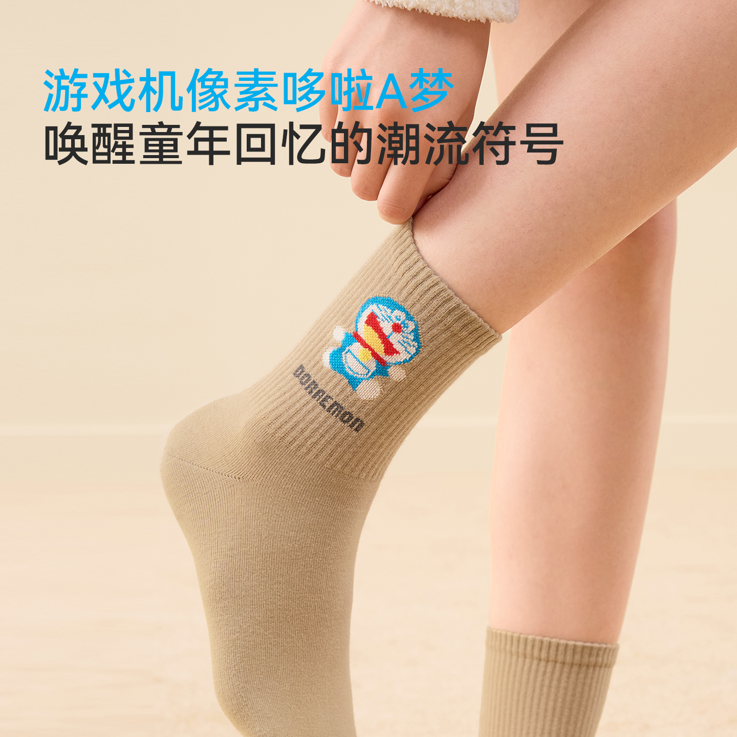 猫人哆啦A梦女士中筒袜2025新款 柔软亲肤透气无骨女袜百搭 秋冬季