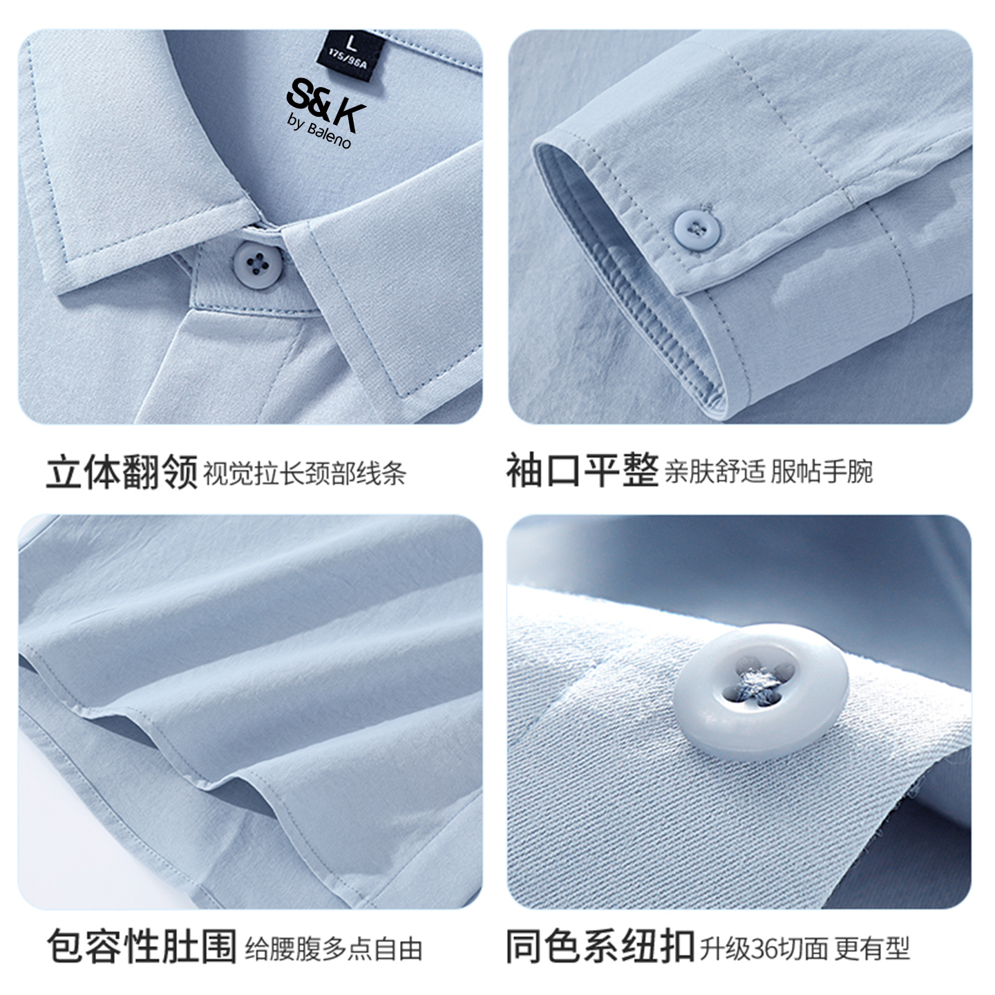 翻领长袖 班尼路S&K系列黑色衬衣男款 男士 自然垂顺衬衫 t恤A 春秋季