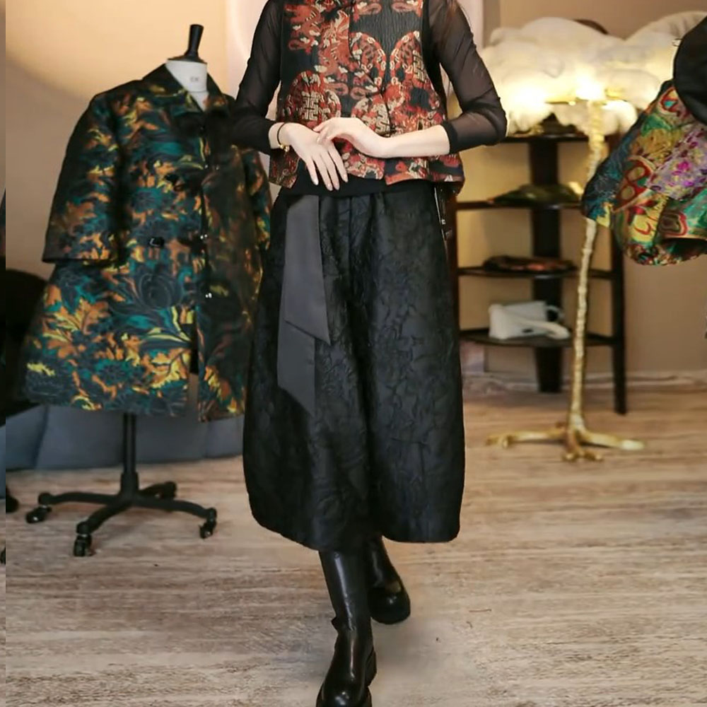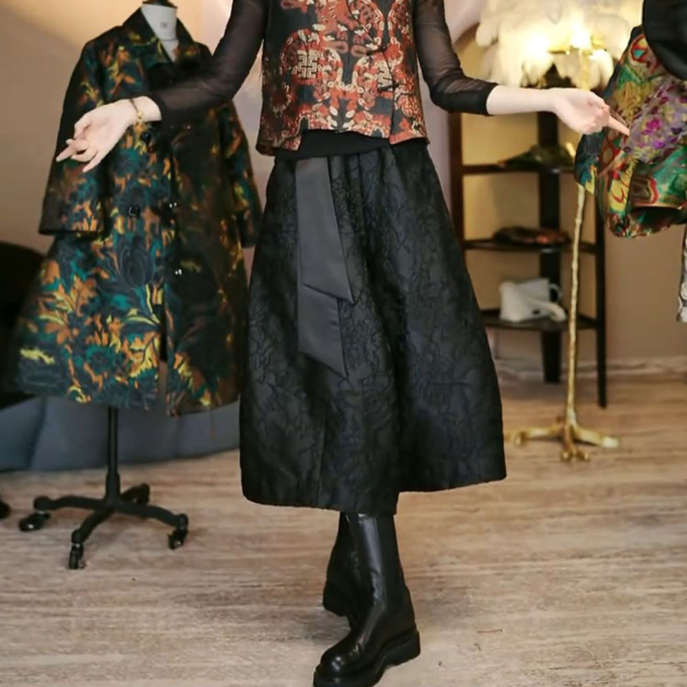 高腰洋气灯笼裤 大码 高端女 春秋九分百搭阔腿裤 国风提花复古花苞裤