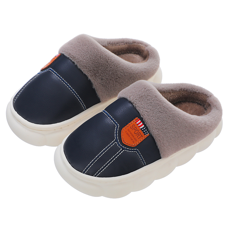 儿童棉拖鞋 保暖 PU皮防水软底防滑加绒加厚亲子成人情侣居家冬季