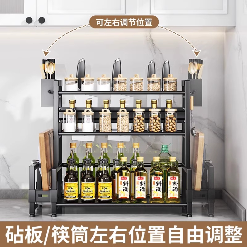 厨房置物架多功能置物架调料品架厨房盐调味罐收纳盒台面调料架子