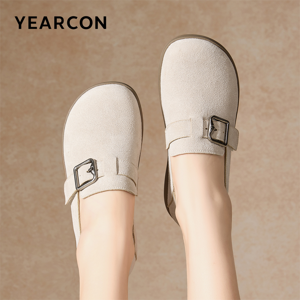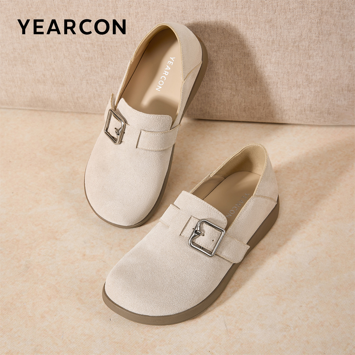 懒人复古休闲平底单鞋 意尔康女鞋 女士全包勃肯乐福鞋 大码 2025秋季