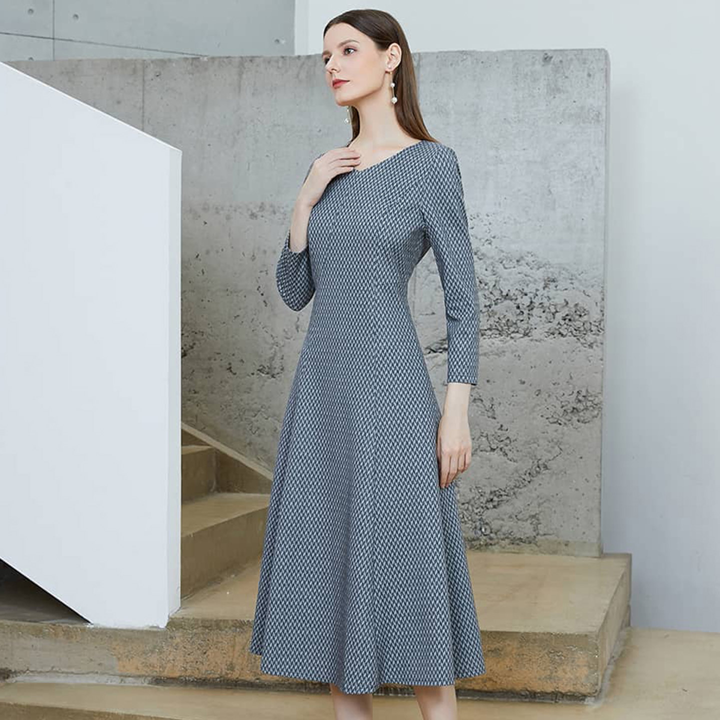 女士格子连衣裙内搭打底背心长裙 新款 热风格 纹连衣裙2025年冬季