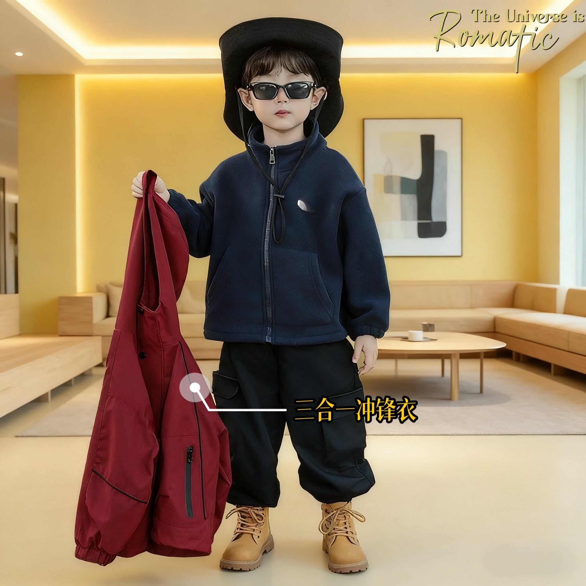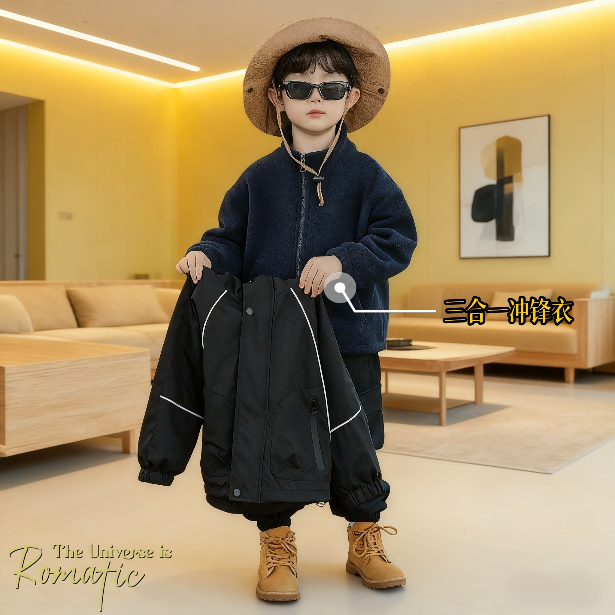 儿童三合一连帽 秋装 小黄鸭男童冲锋衣风衣运动外套春秋款 2025新款