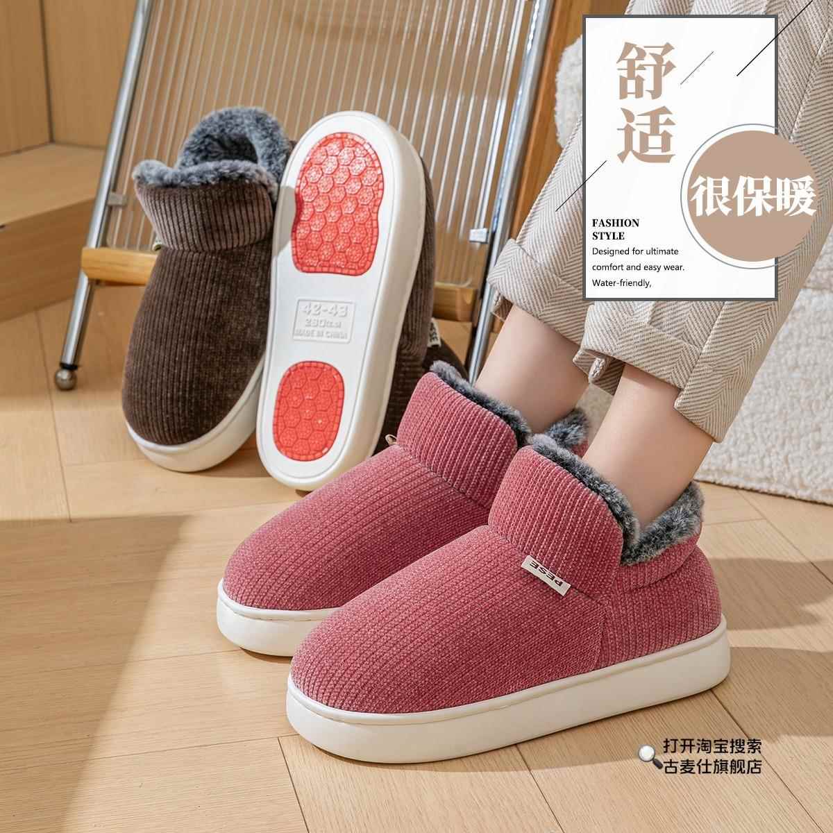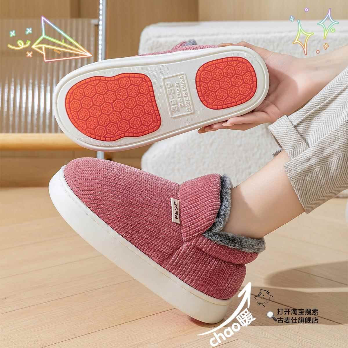 室内居家高帮保暖全包跟厚底妈妈棉鞋 2025新款 女秋冬季 防滑棉拖鞋