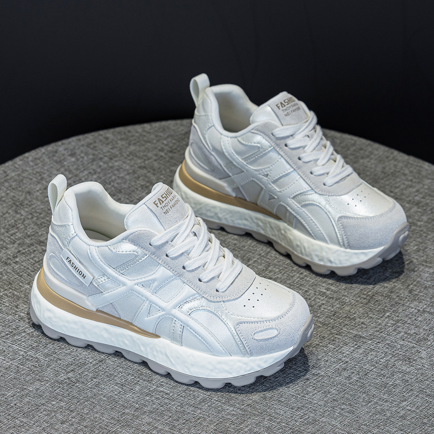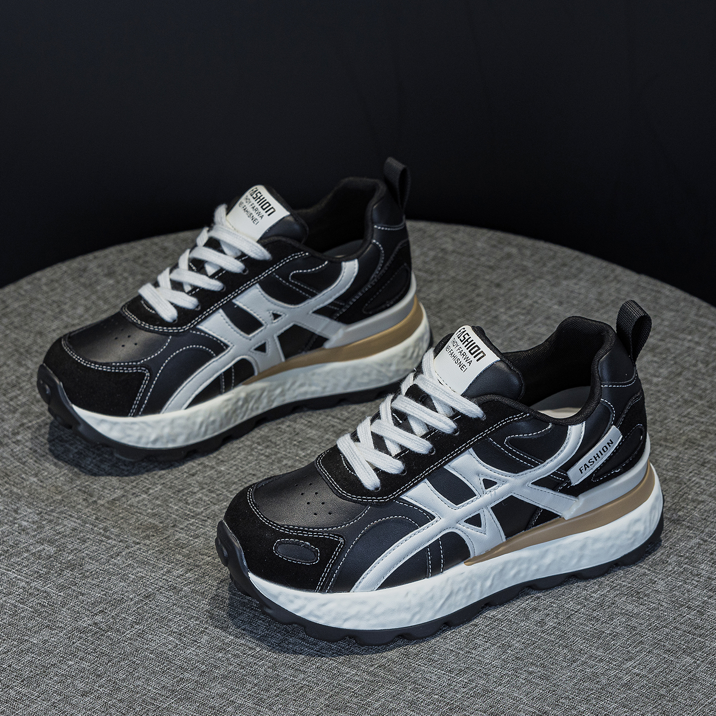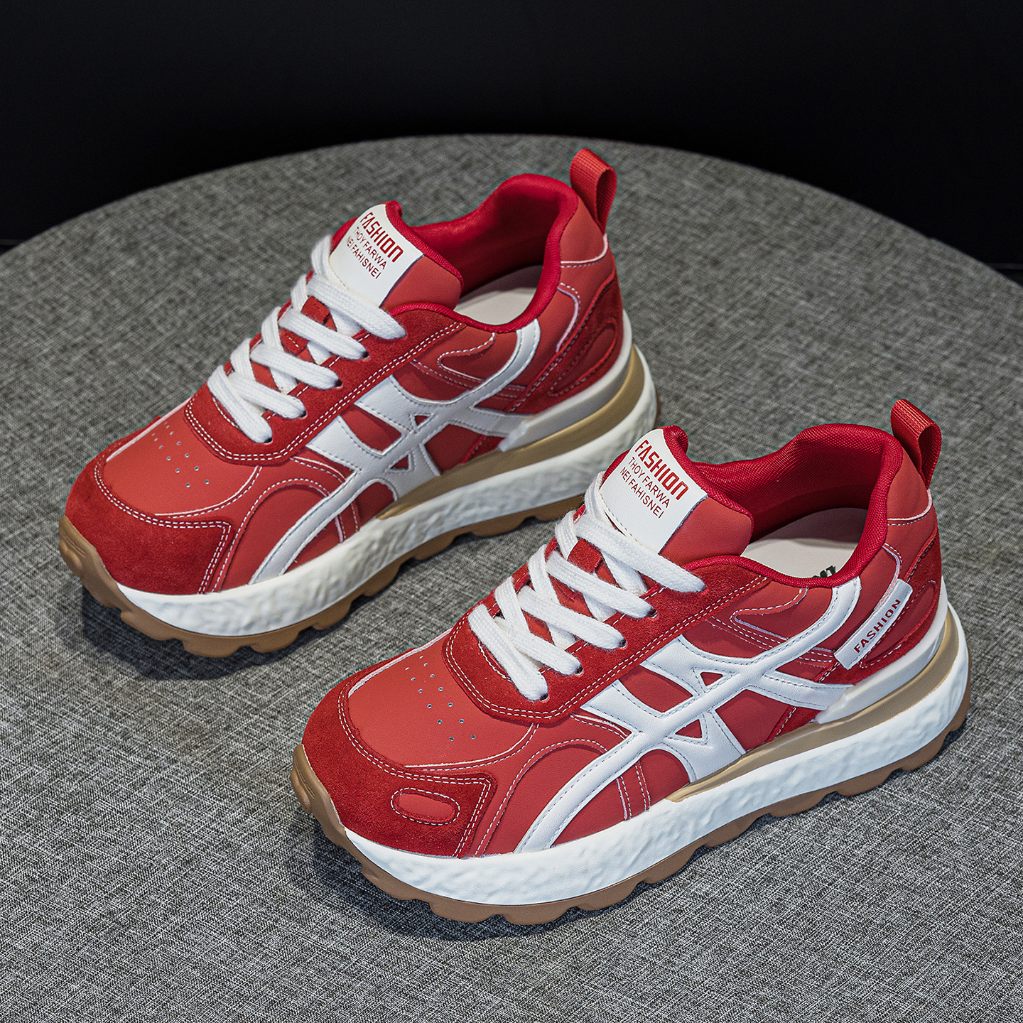 厚底增高轻便运动休闲潮鞋 复古红色真皮老爹鞋 爆款 新款 女2025秋季