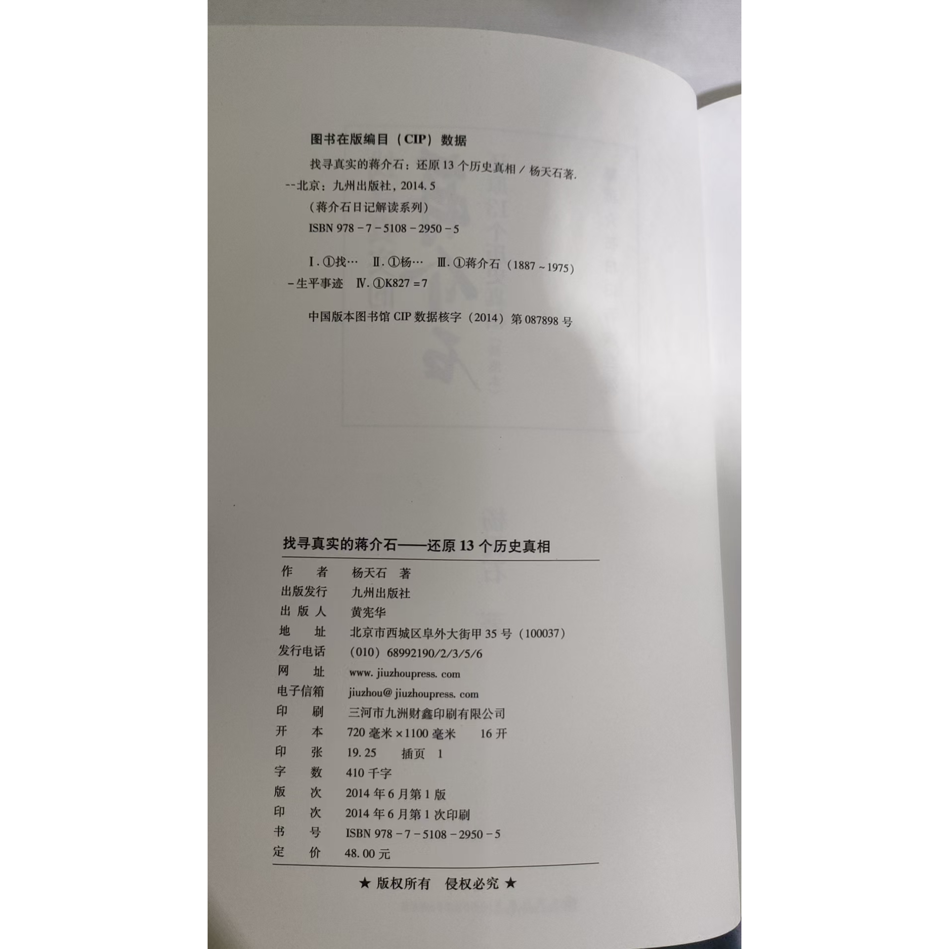 找寻真实 蒋介石还原13个历史真相 插图本 社 库存 九州出版 正版 断版