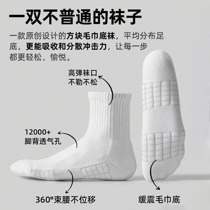 长袜 中筒袜篮球羽毛球女款 毛巾底运动袜子男士 纯棉防臭跑步秋夏季