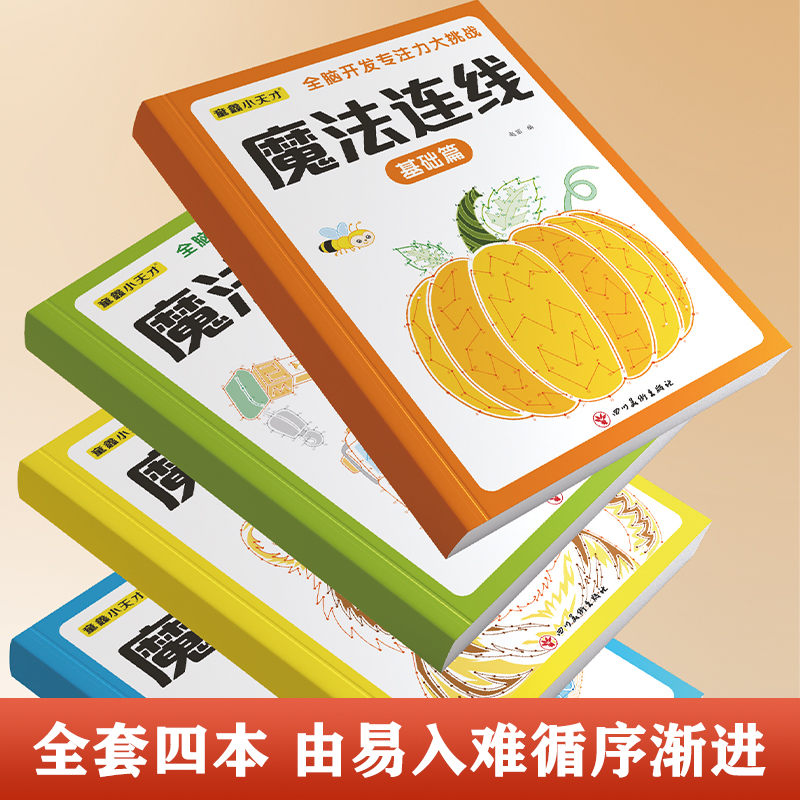 魔法连线儿童全脑开发专注力大挑战3 12岁幼儿益智早教思维专注力训练书魔法线条数字连线连数字成画游戏幼儿园连点划线成图涂色画