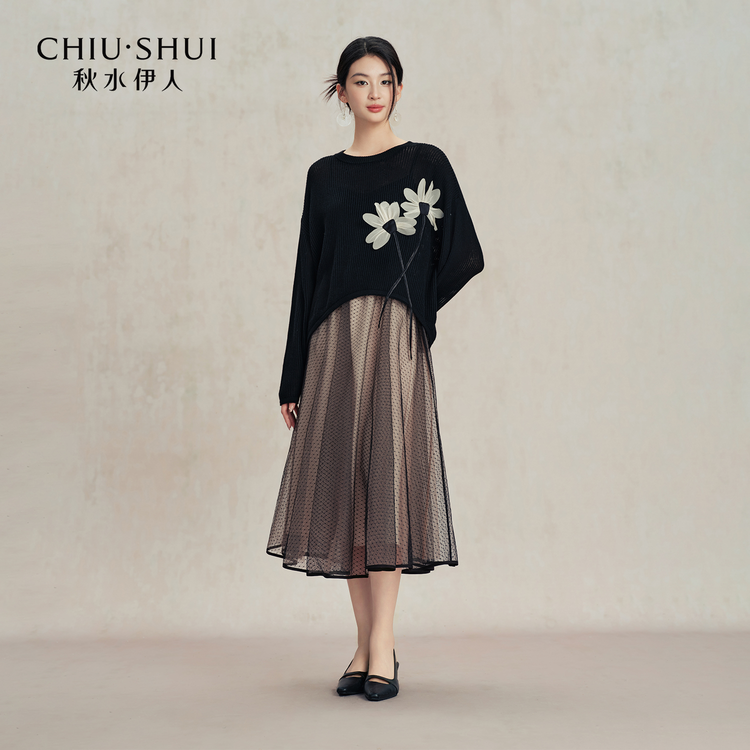 气质立体花朵上衣纱裙套装 秋水伊人时尚 新款 2025年秋季 圆领长袖