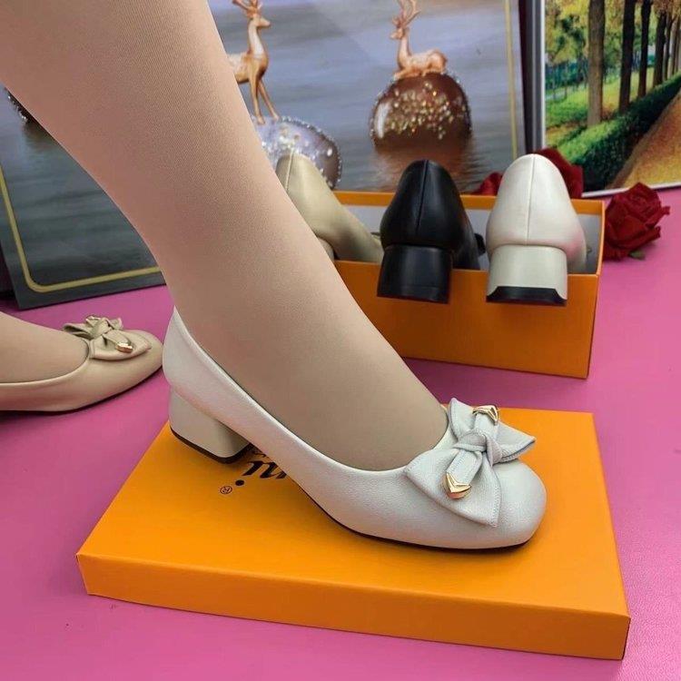 单鞋 羊皮浅口法式 千百度粗高跟鞋 异形跟职业通勤大码 静音系列