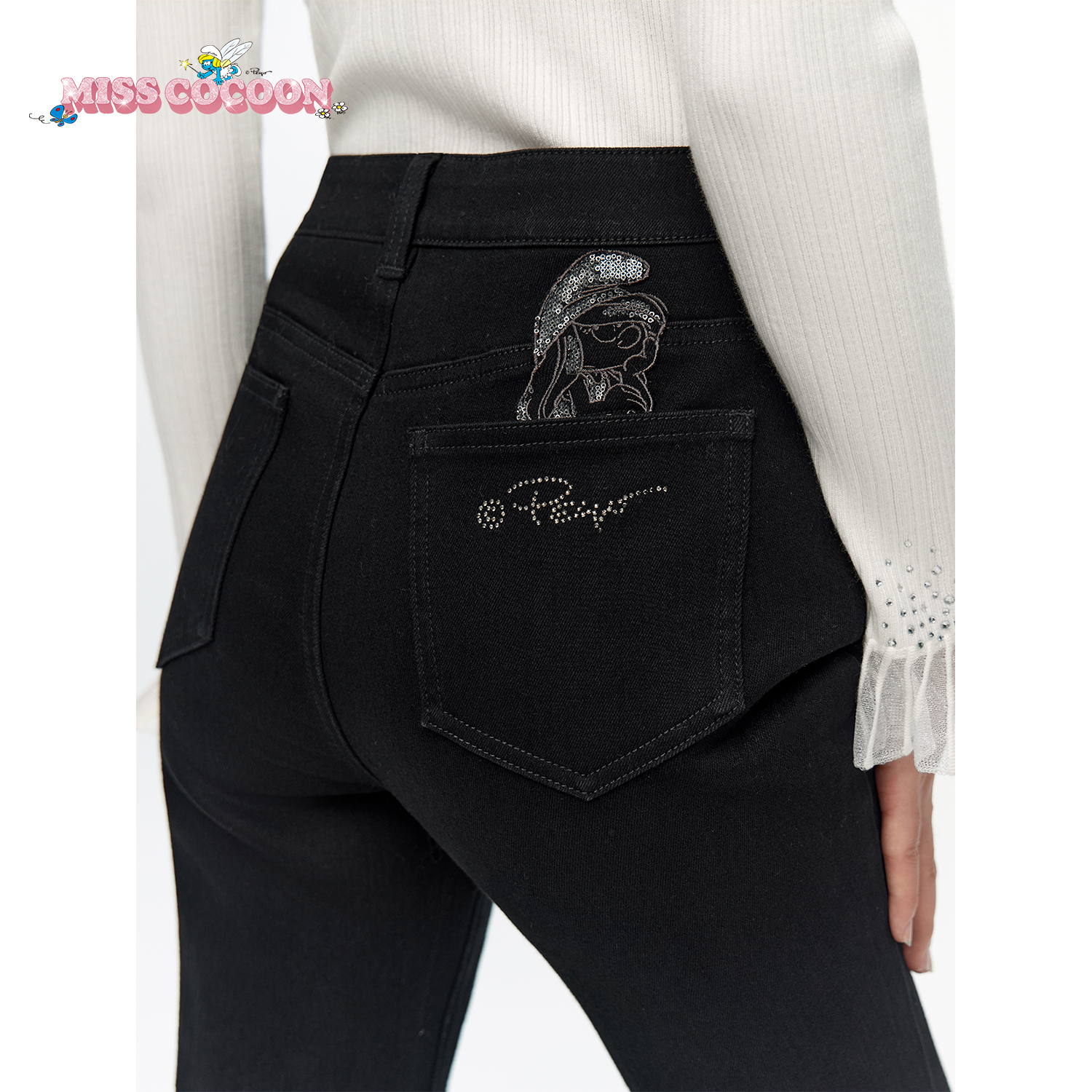 黑色弹力喇叭裤 新款 女2025冬季 MISSCOCOON可可尼蓝精灵联名牛仔裤