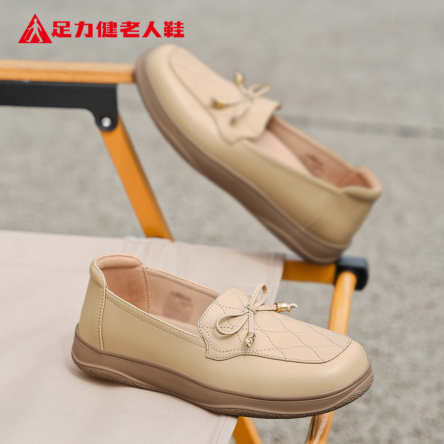 轻便耐磨一脚蹬玛丽珍皮鞋 足力健官方旗舰2025秋季 时尚 妈妈鞋 新款