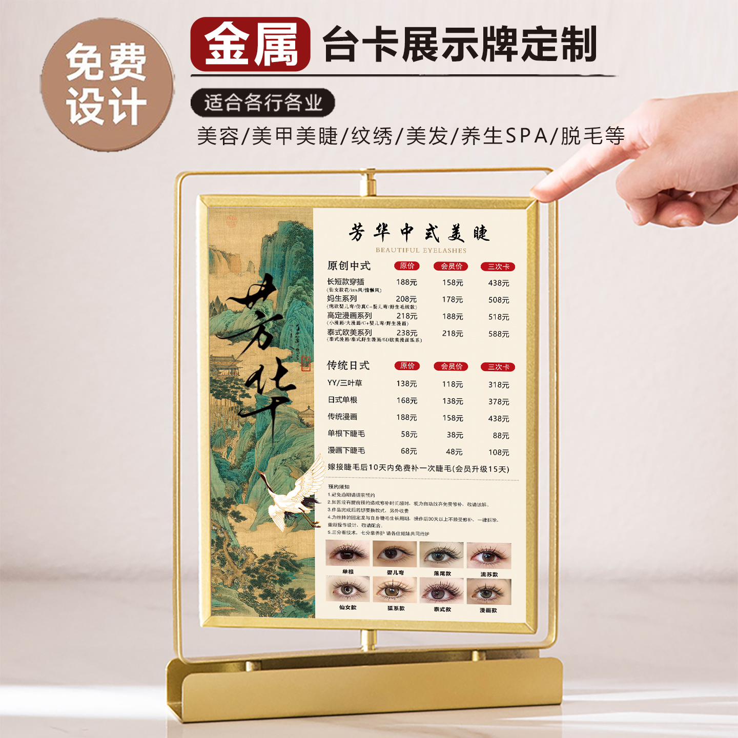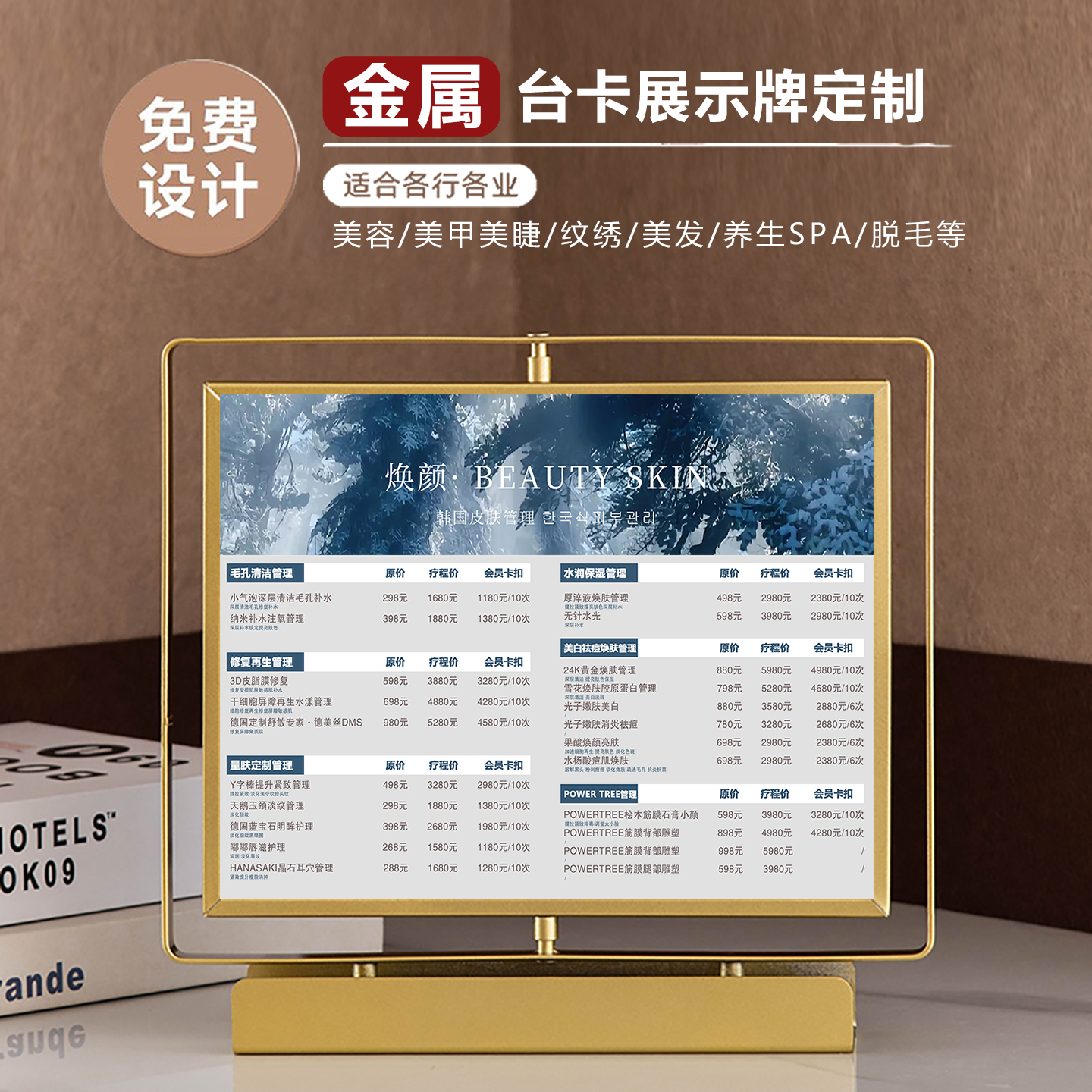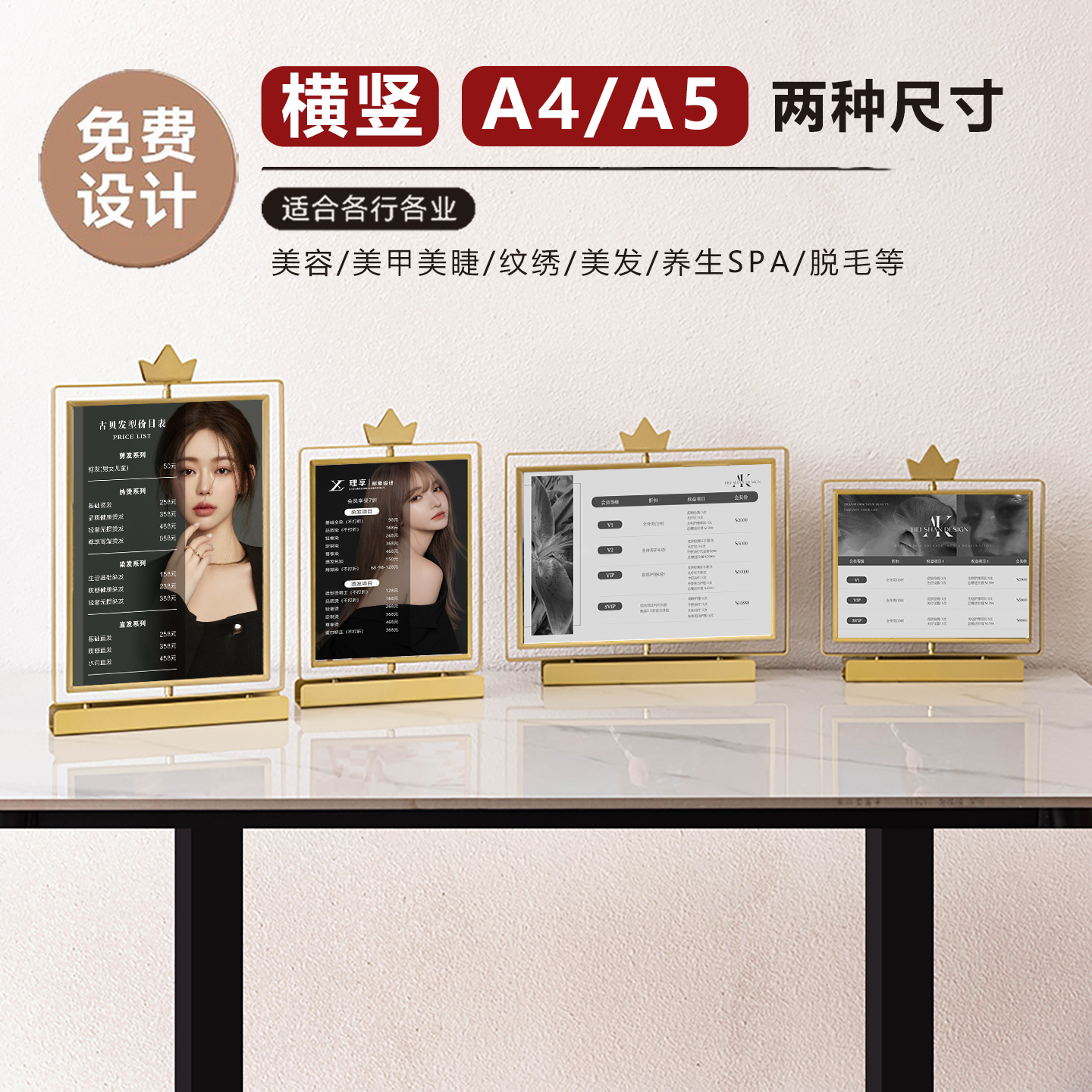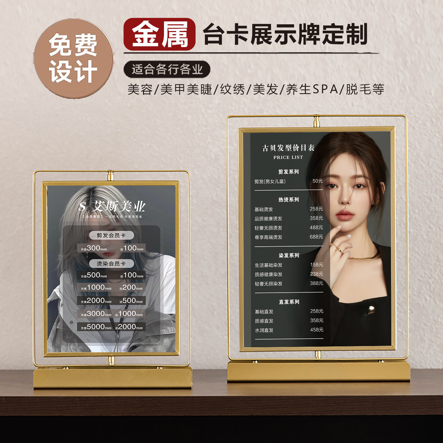 美容院价目表定制金属皇冠摆台卡美甲美睫纹绣价目表展示牌桌牌理发店美发充值活动价格表桌牌双面旋转价格牌