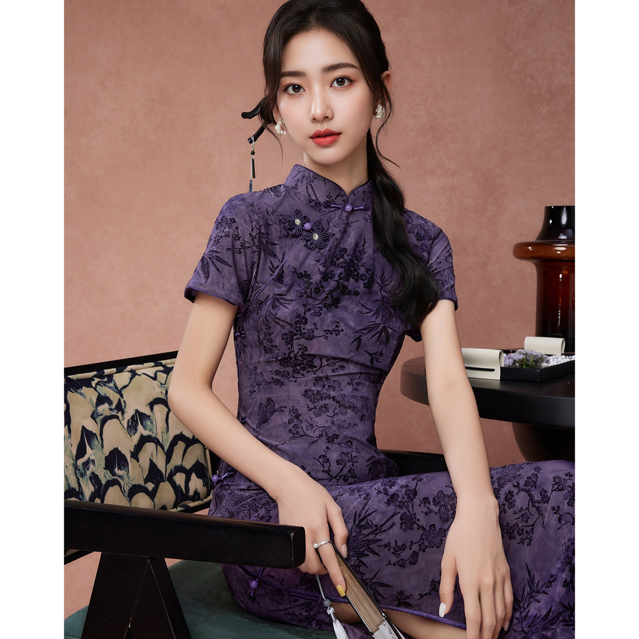 国风女装 绿色丝绒旗袍连衣裙女2025年秋冬新款 年会礼服裙子新中式
