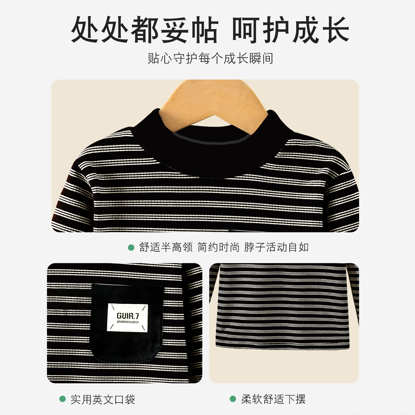 T恤男孩休闲内搭秋季 男童打底衫 上衣宝宝秋季 儿童条纹长袖 春秋款