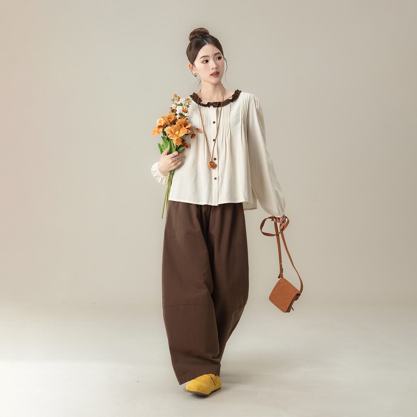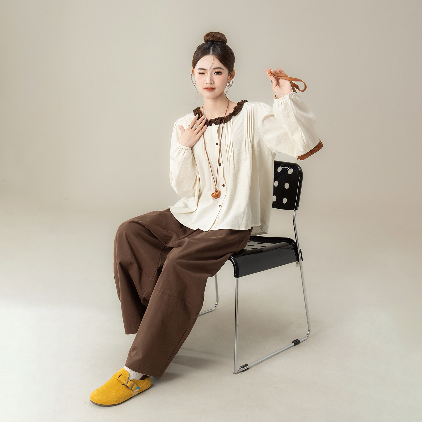 假两件 V领撞色宽松休闲长袖 Unvesno 老钱莱赛尔秋季 衬衫