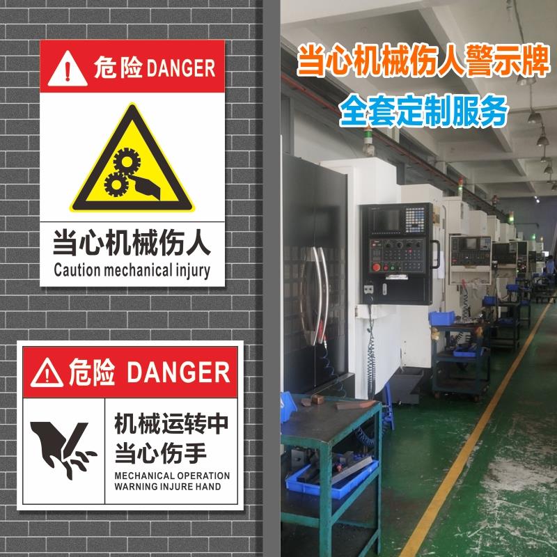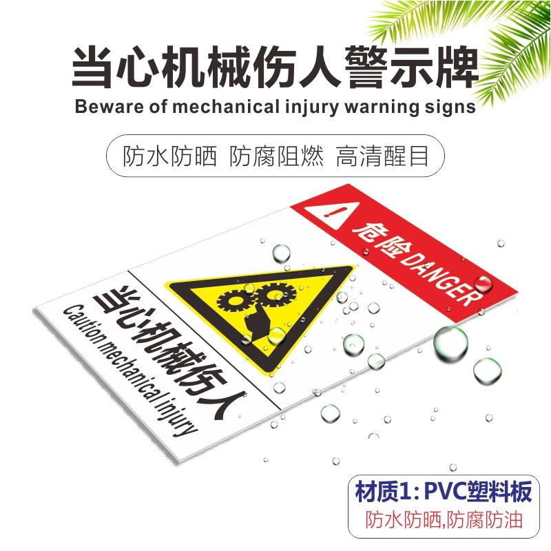 旋转注意安全标识牌当心卷入警告标志严禁止吸烟火仓库有电危险警示贴PVC塑料贴安全高温标识标牌可定制