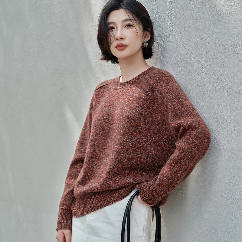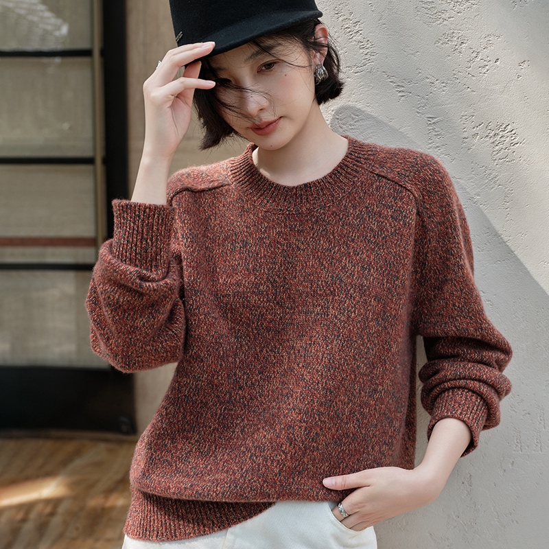 高级感上衣宽松打底针织衫 圆领100%纯山羊绒衫 女高端毛衣秋冬新款