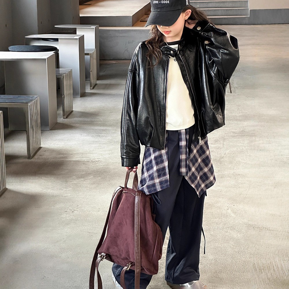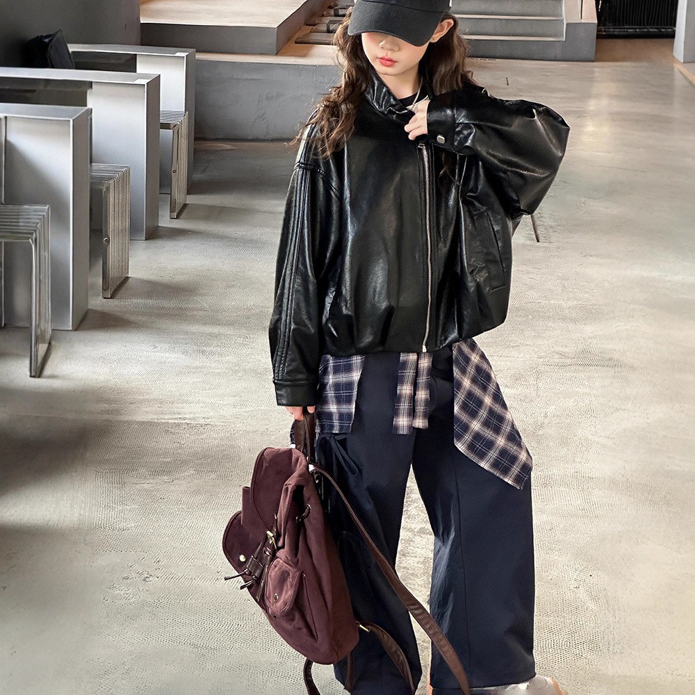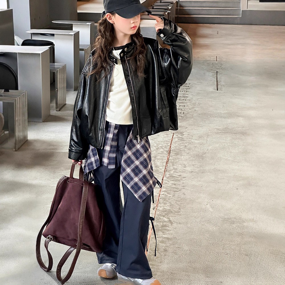 女童皮衣外套2025秋装 洋气网红炸街大童女孩春秋儿童夹克上衣 新款