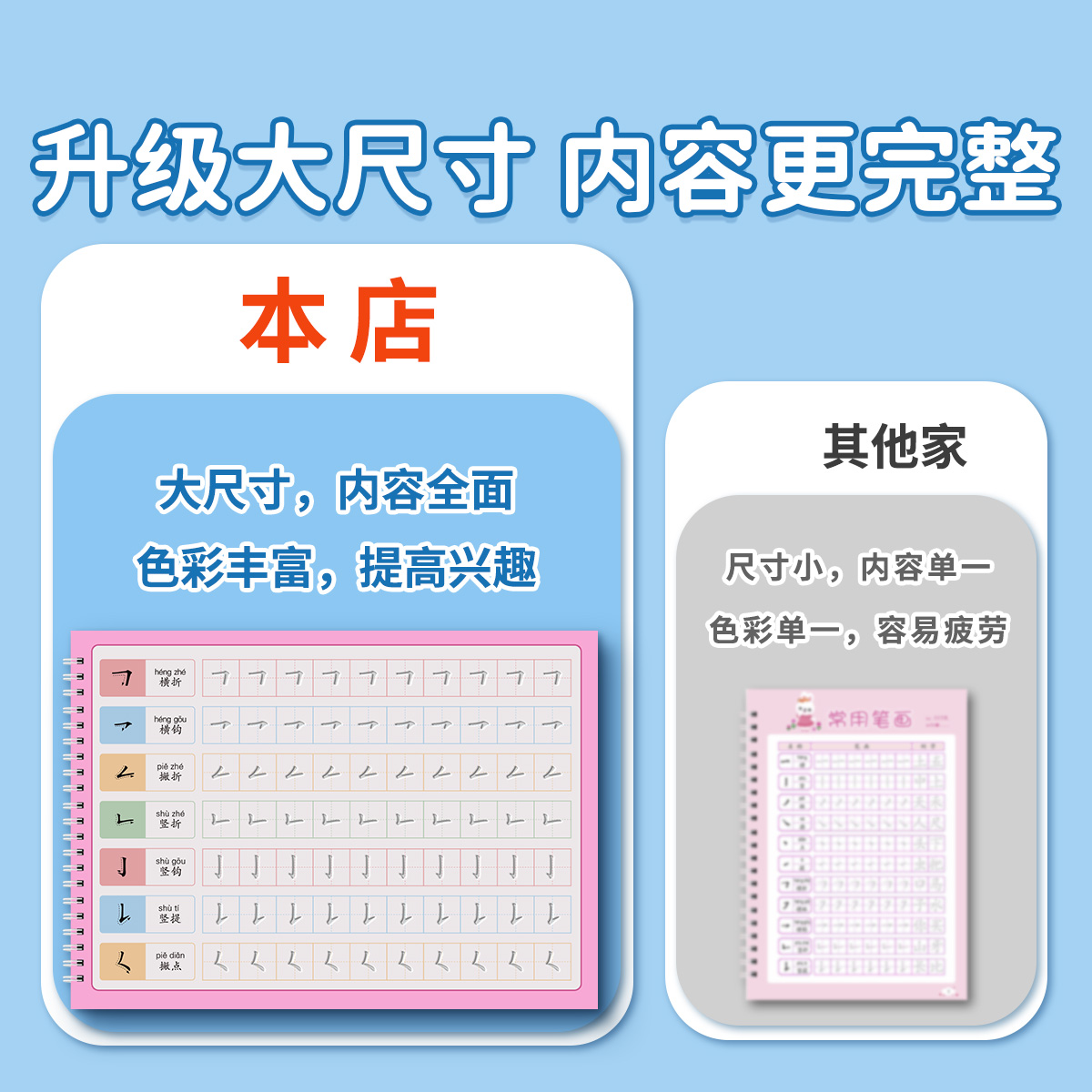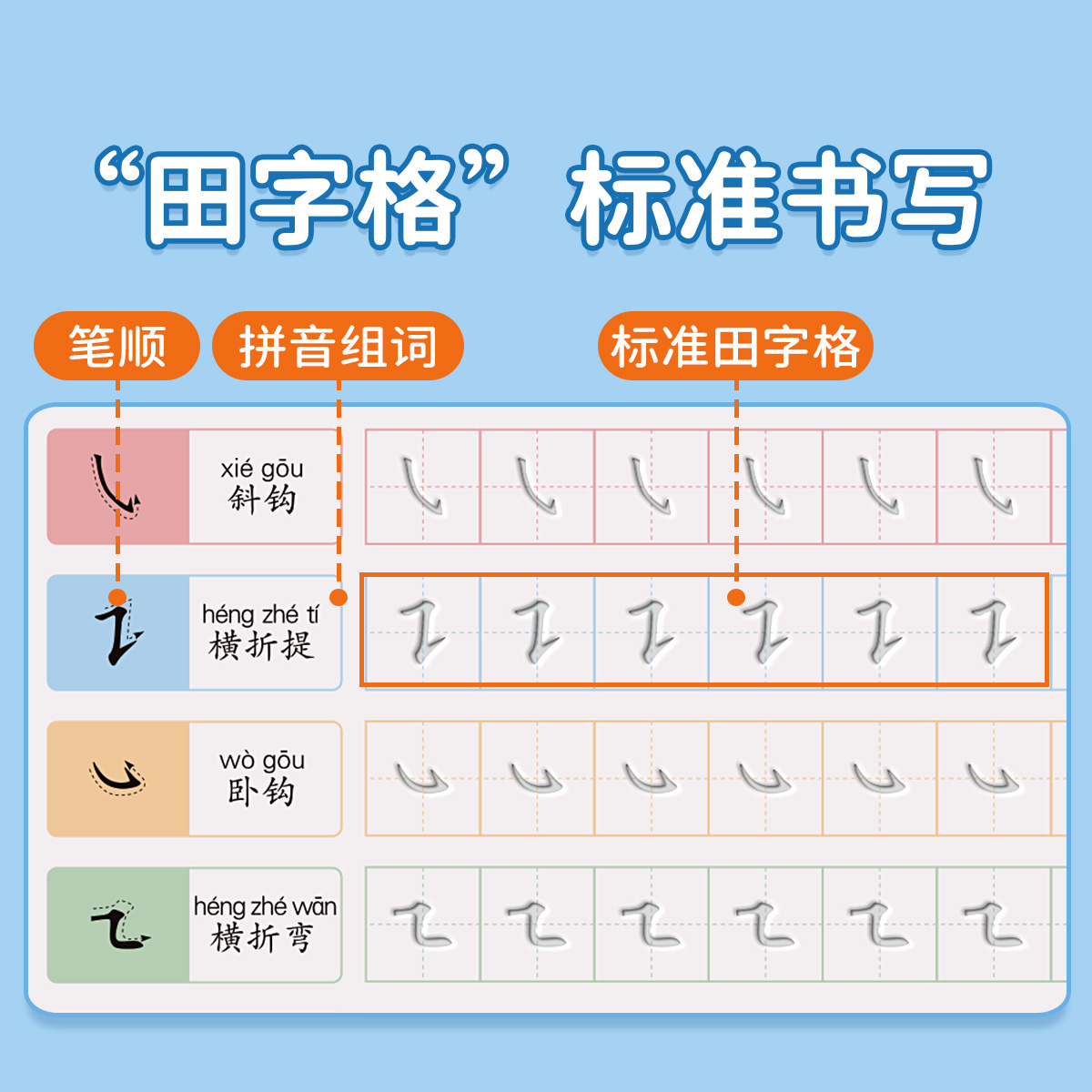 笔画凹槽练字帖汉字偏旁部首笔画笔顺练字帖儿童3岁456幼小衔接凹槽练字练习描红本控笔训练字帖幼儿园小中大班一年级初学者入门