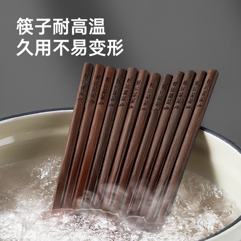炊大皇筷子家用高档新款 铁木筷无漆无蜡木筷防滑油炸耐高温