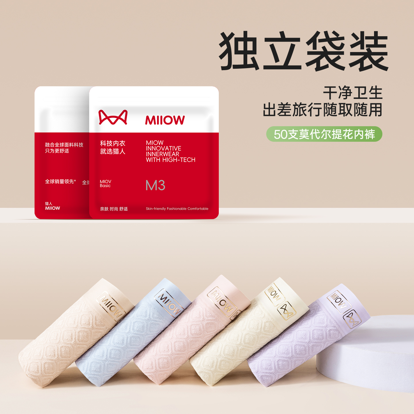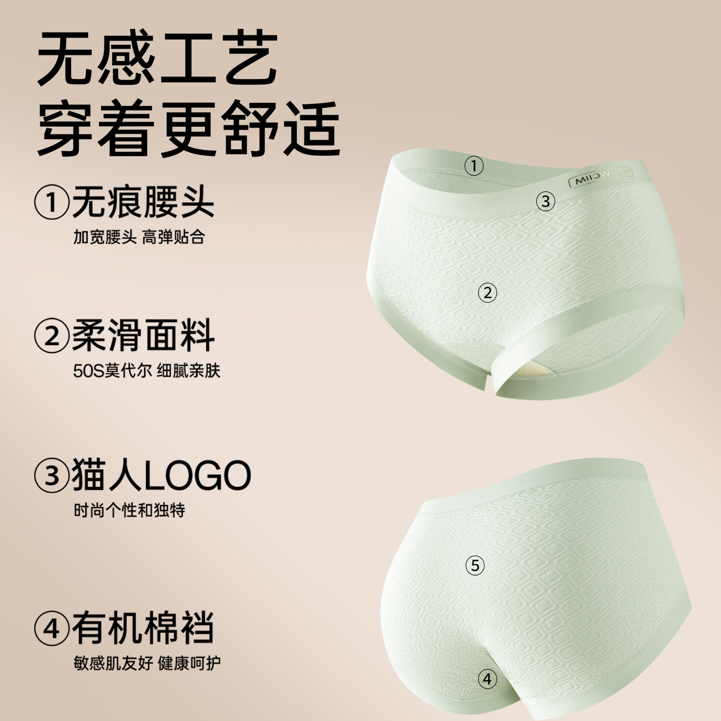 纯棉抗菌裆轻薄透气女士三角短裤 2025新款 女款 猫人莫代尔中腰内裤
