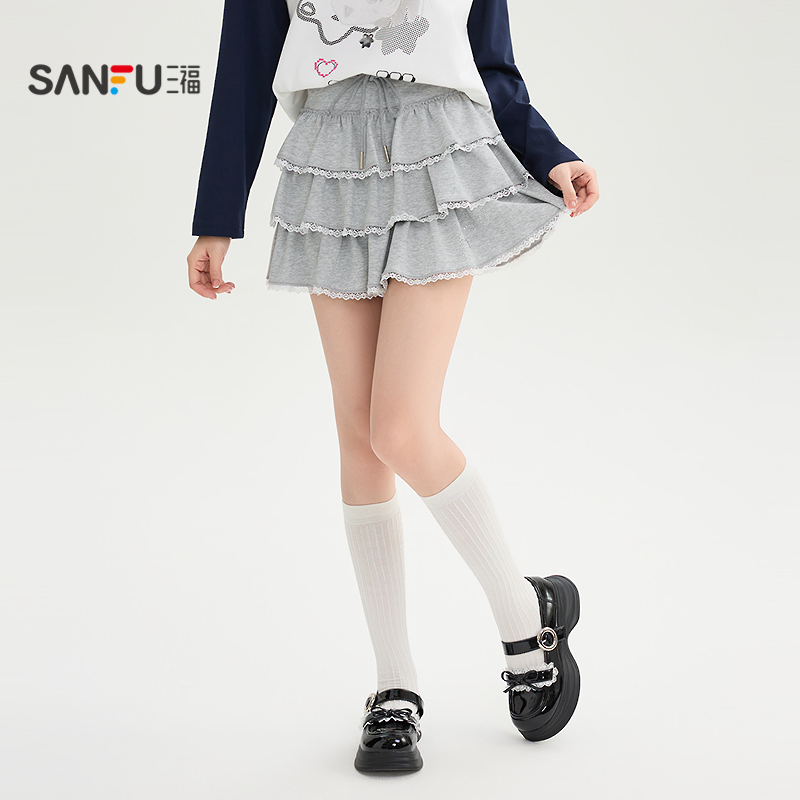 508760 蕾丝花边半身裙有内衬蛋糕裙子女装 三福短裙女2025新款 秋季