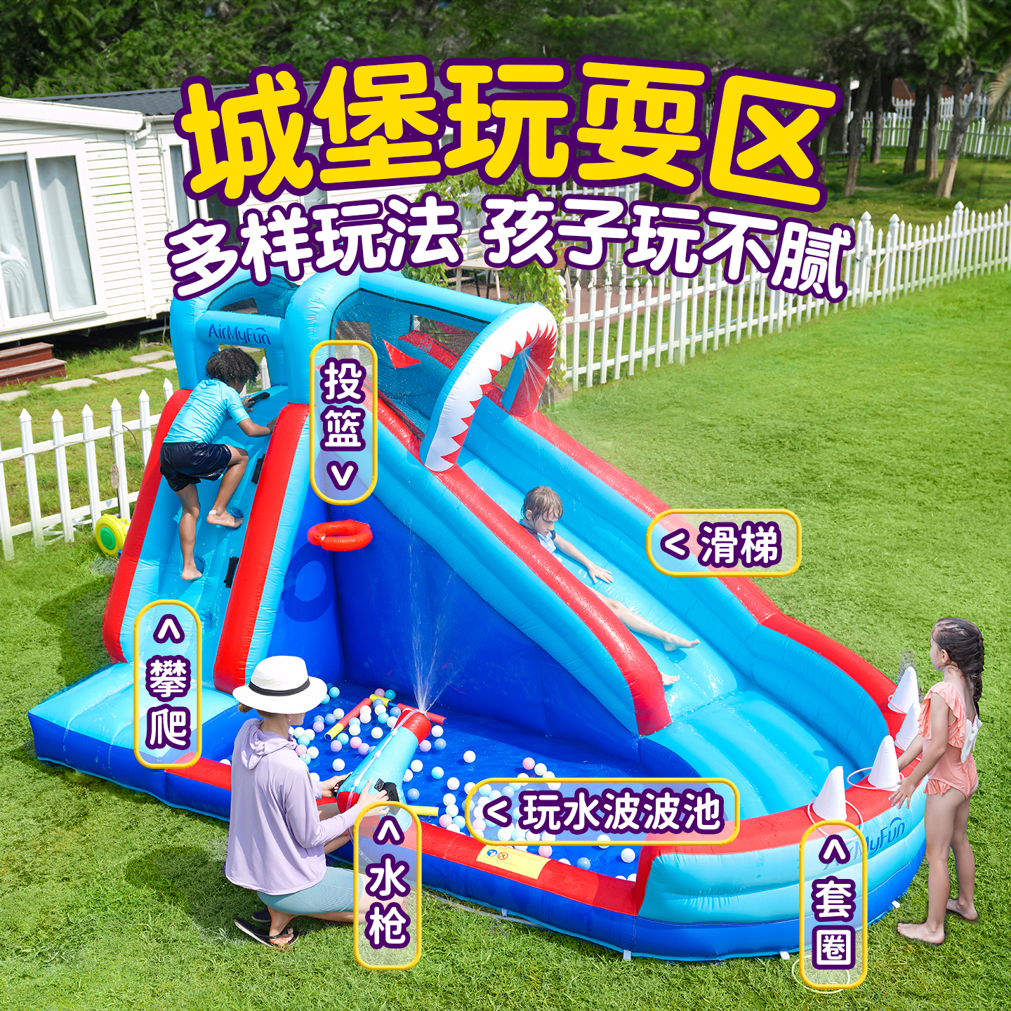 AirMyFun鲨鱼滑滑梯儿童充气城堡小型家用滑滑梯波波池攀爬架玩水
