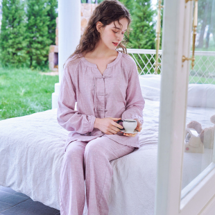 国风套装 纯棉睡衣女新中式 盘扣全棉家居服冬 长袖 美标2025春秋新款