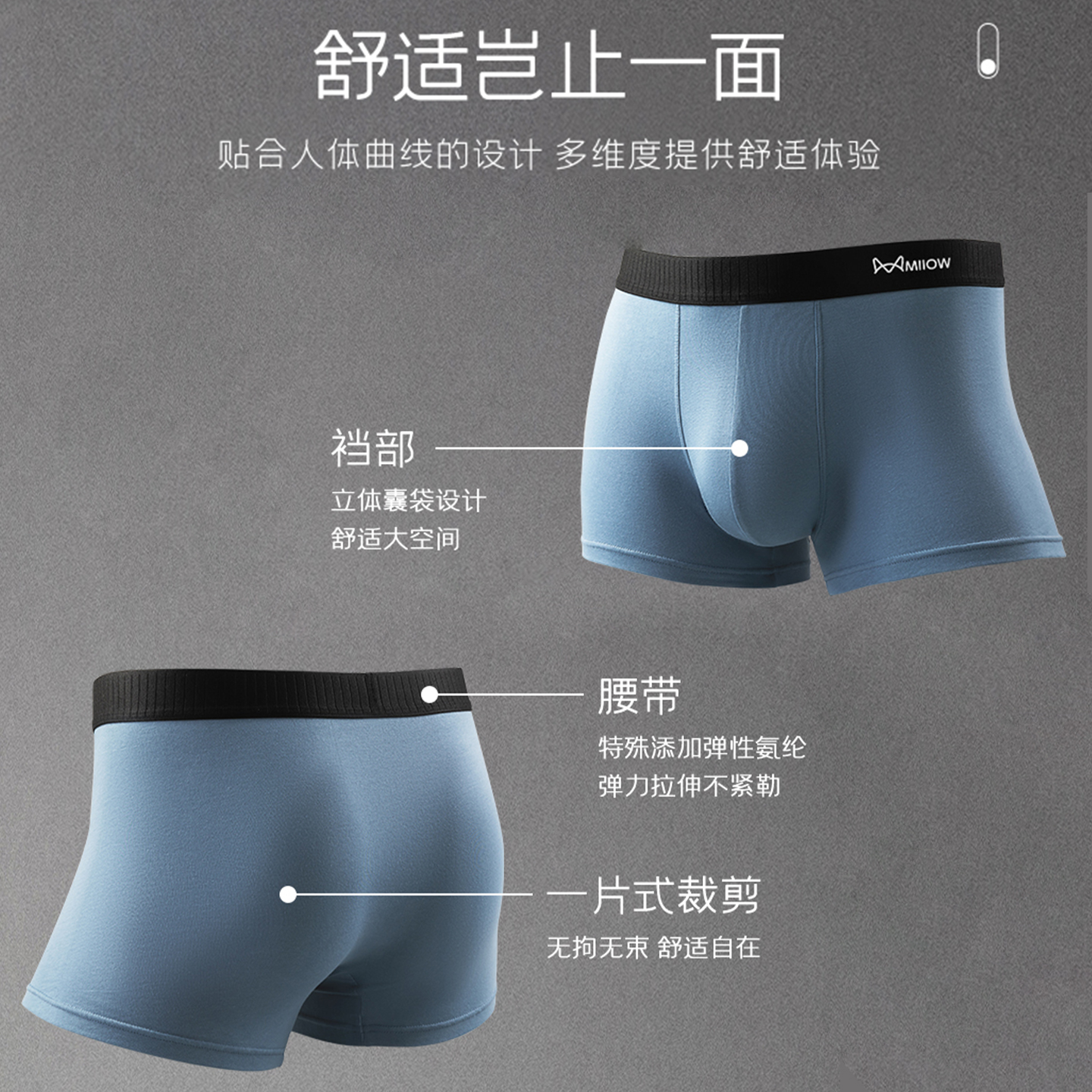 裤 猫人抗菌裆男士 运动纯棉裆平角大码 男冰丝无痕四角裤 青少年 内裤
