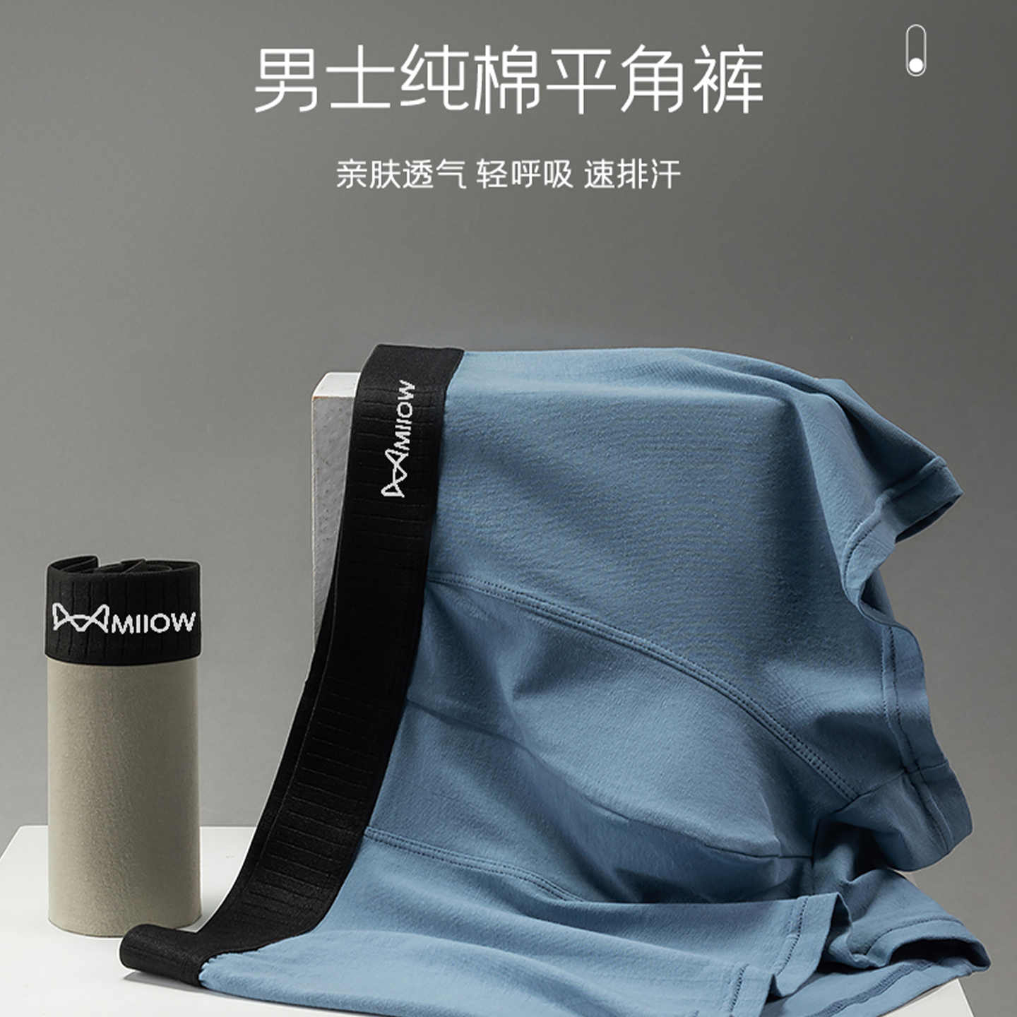 2025新款 男生纯棉全棉抑菌裆四角裤 男式 平角短裤 猫人男士 男款 内裤