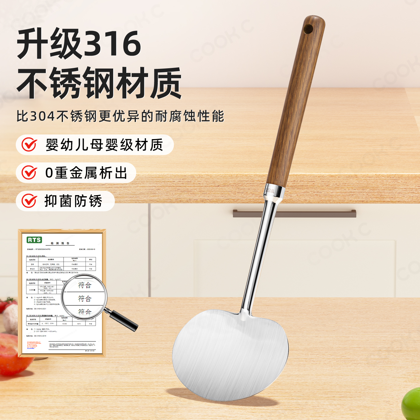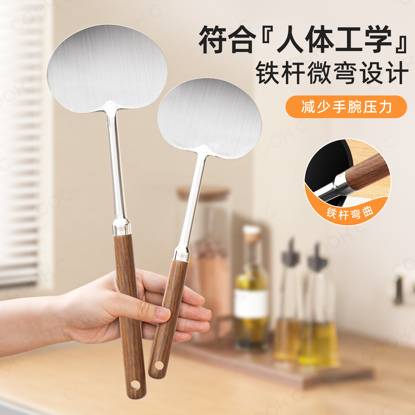 炊达人锅铲316不锈钢木柄把蘑菇状铲家用铲勺二合一铁锅专用铲子