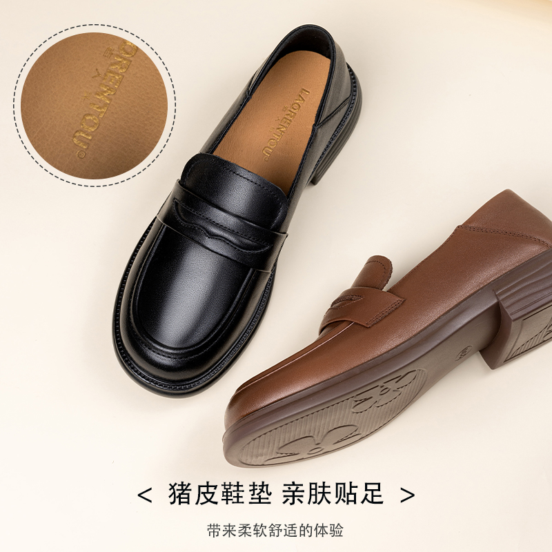 一脚蹬上班通勤鞋 老人头女鞋 女士妈妈鞋 真皮轻质休闲皮鞋 2025新款