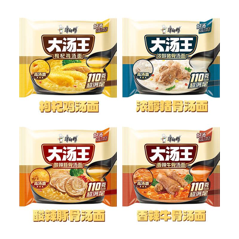康师傅大汤王袋装 酸辣豚骨猪骨枸杞鸡汤面高汤方便面速食泡面整箱