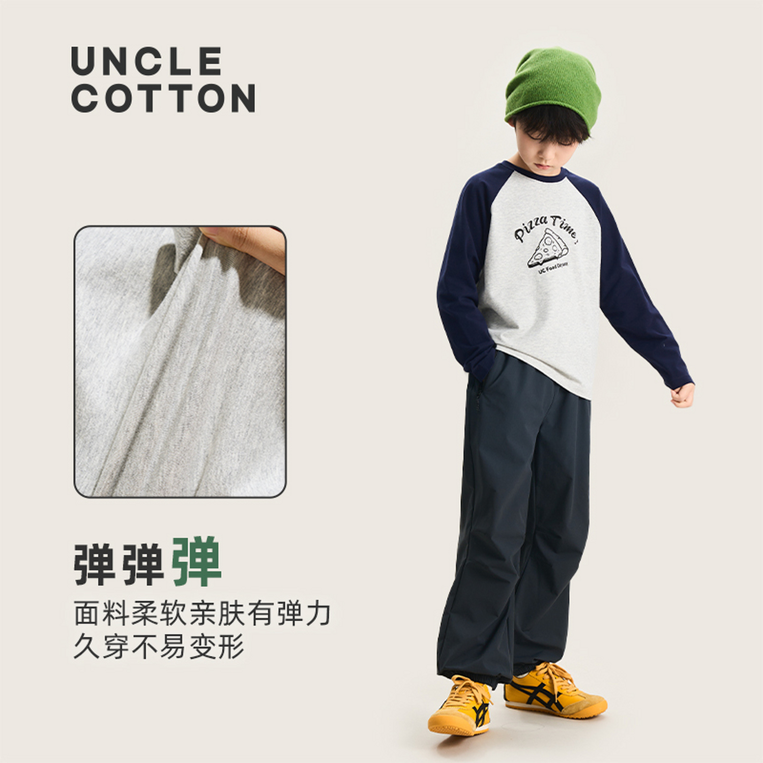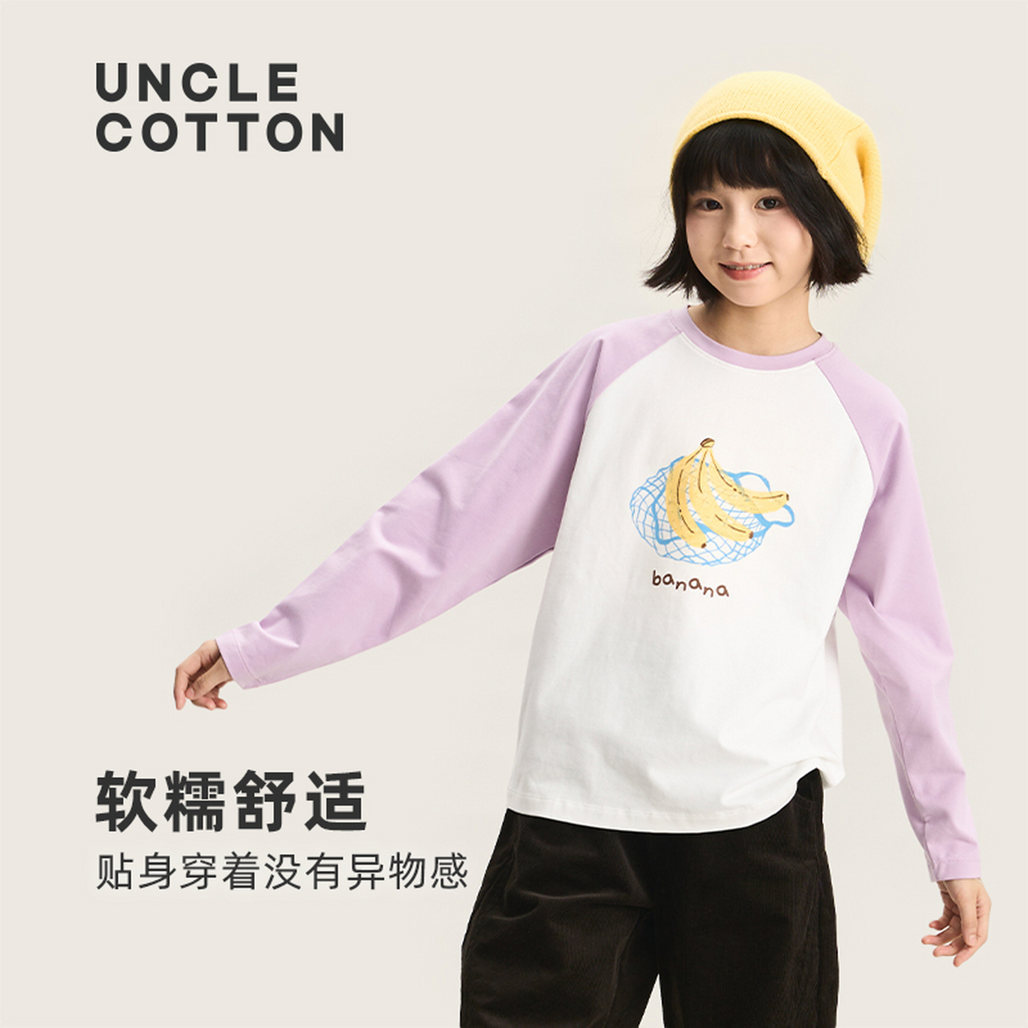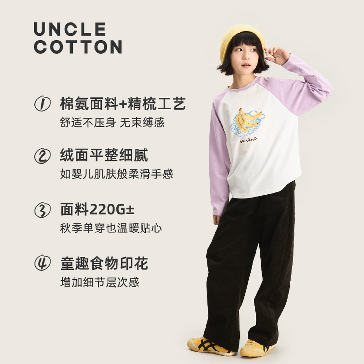 T恤磨毛插肩袖 棉叔叔女童春秋撞色长袖 圆领T恤男童 舒适棉族