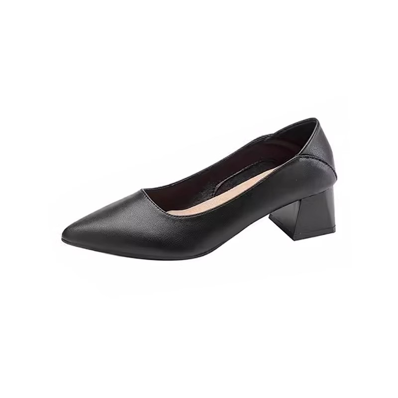 宽楦羊皮尖头细跟通勤浅口单鞋 大码 黑松露 秋冬女鞋 7or9黑色高跟鞋