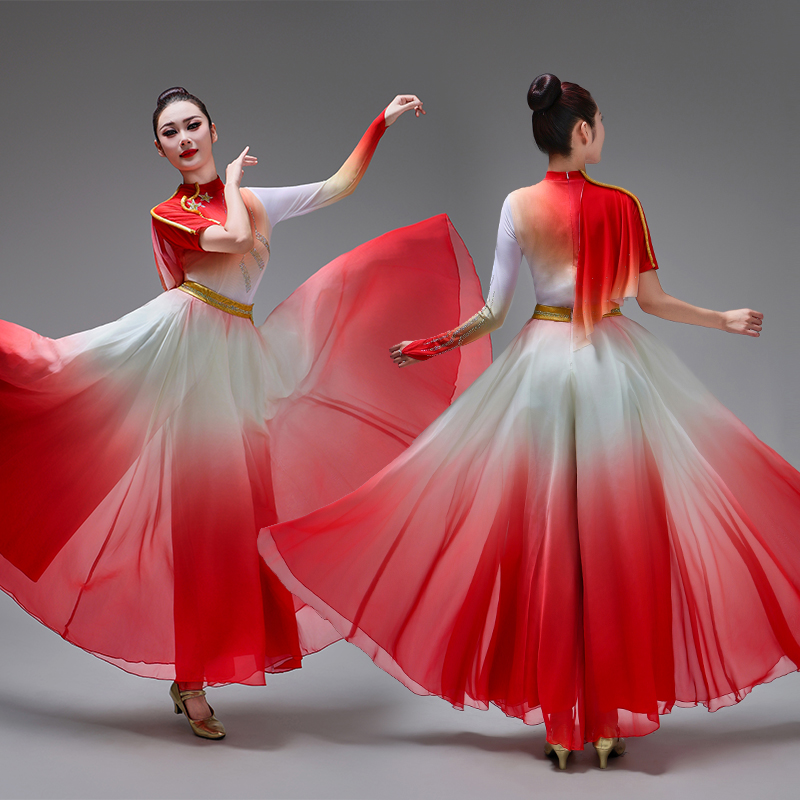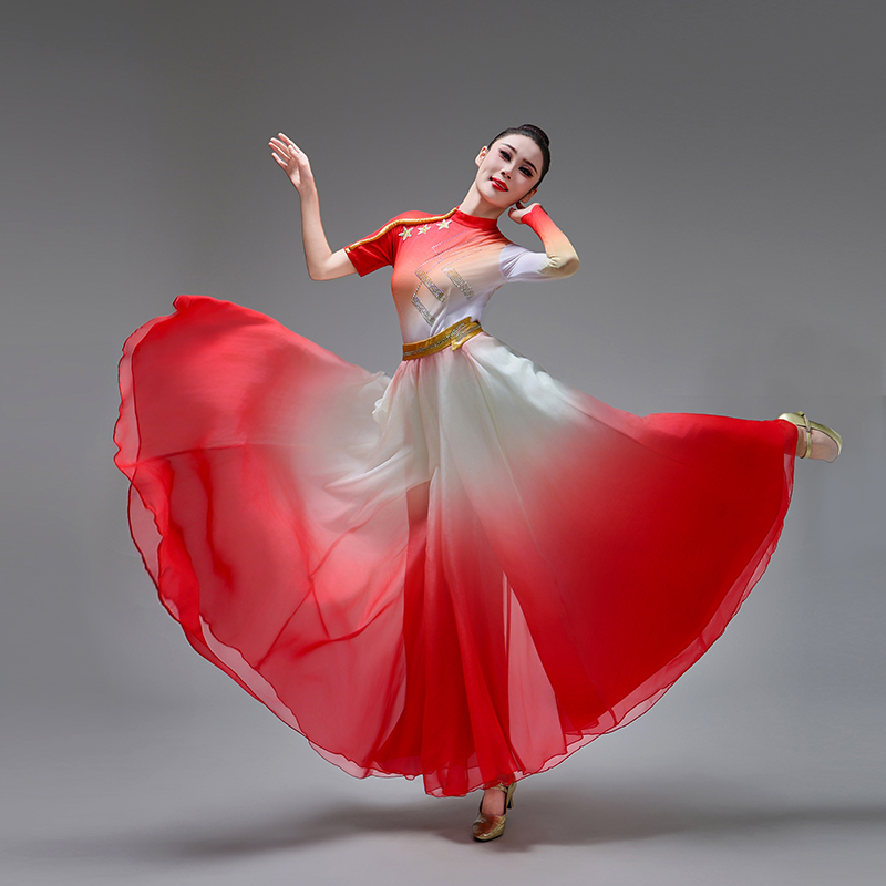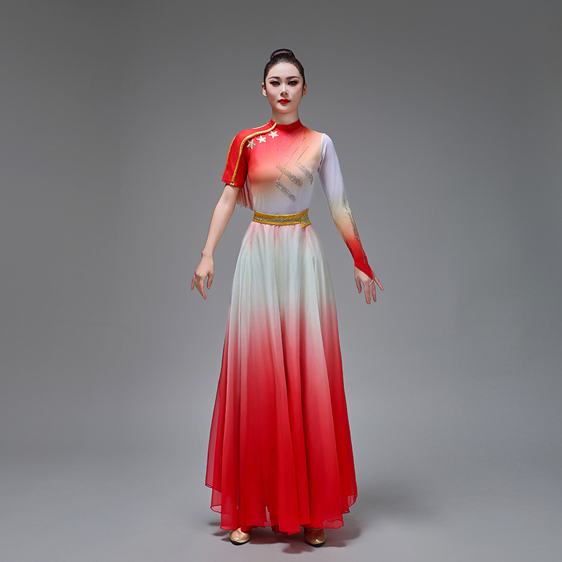 新款 祖国大合唱团演出服女长裙歌伴舞大摆裙 现代舞演出服歌颂我