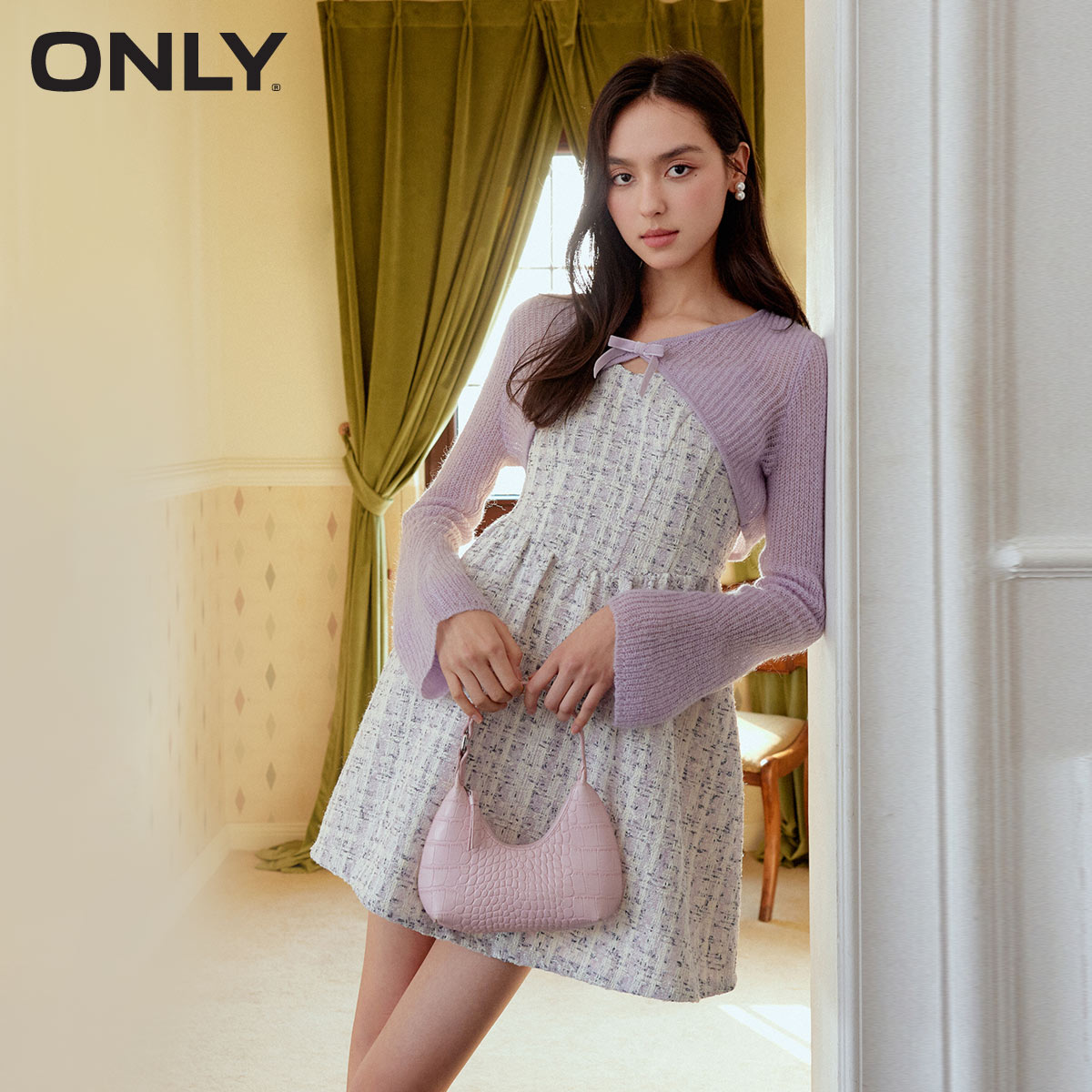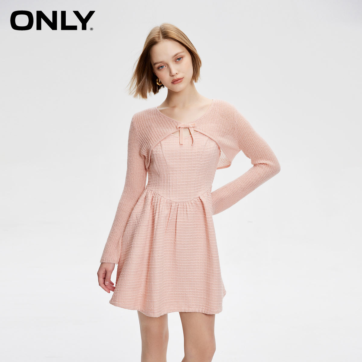 ONLY奥莱清仓 套装 秋季 长袖 连衣裙女 甜美风气质V领短款