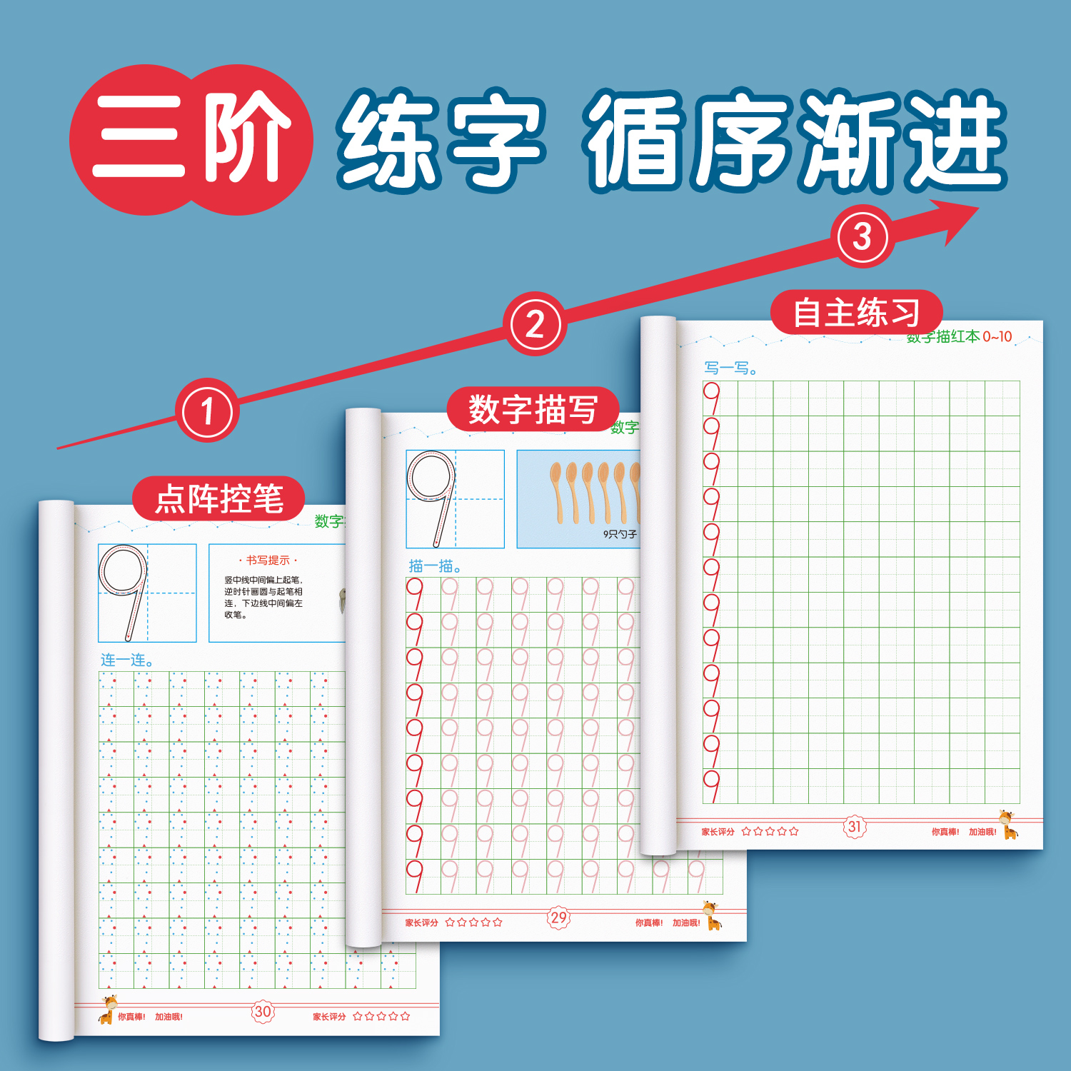 儿童数字控笔训练字帖幼儿园学前班幼小衔接宝宝练字帖3 6岁写字练习小学生一年级拼音笔控描红本大班中班小班入门初学者描红练字