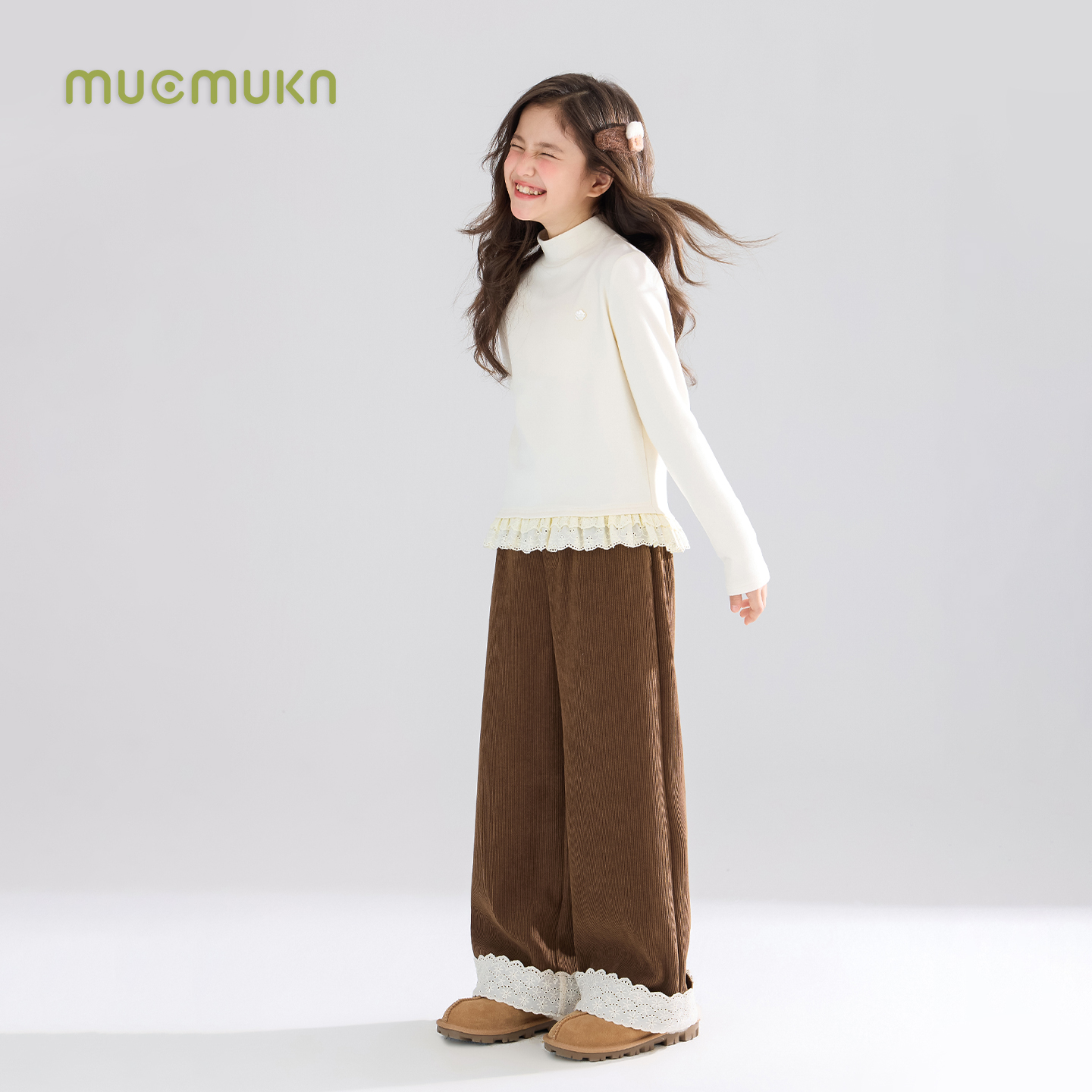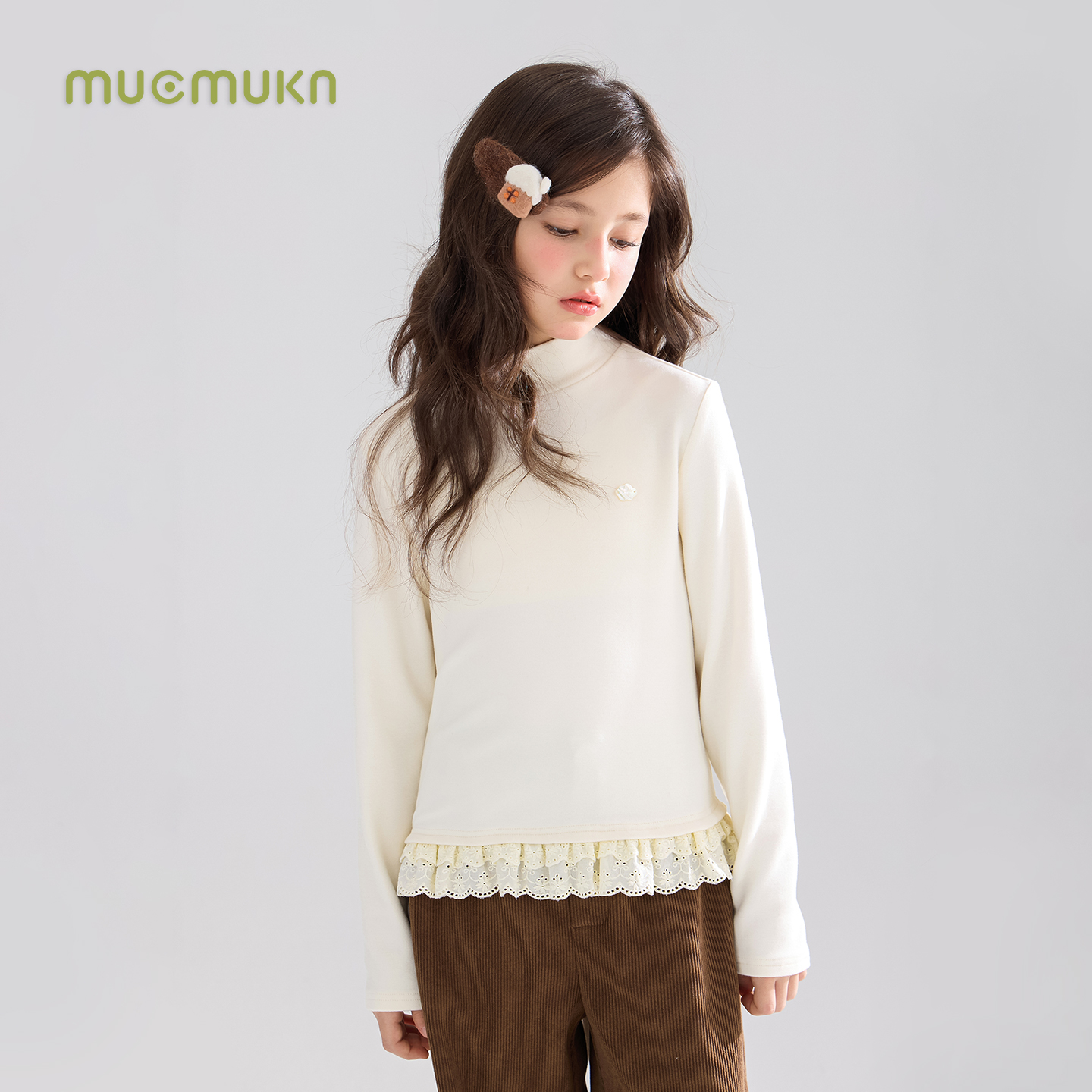 保暖上衣女童冬新款 贝母标拼接花边打底衫 暖绒无静电 MUCMUKN