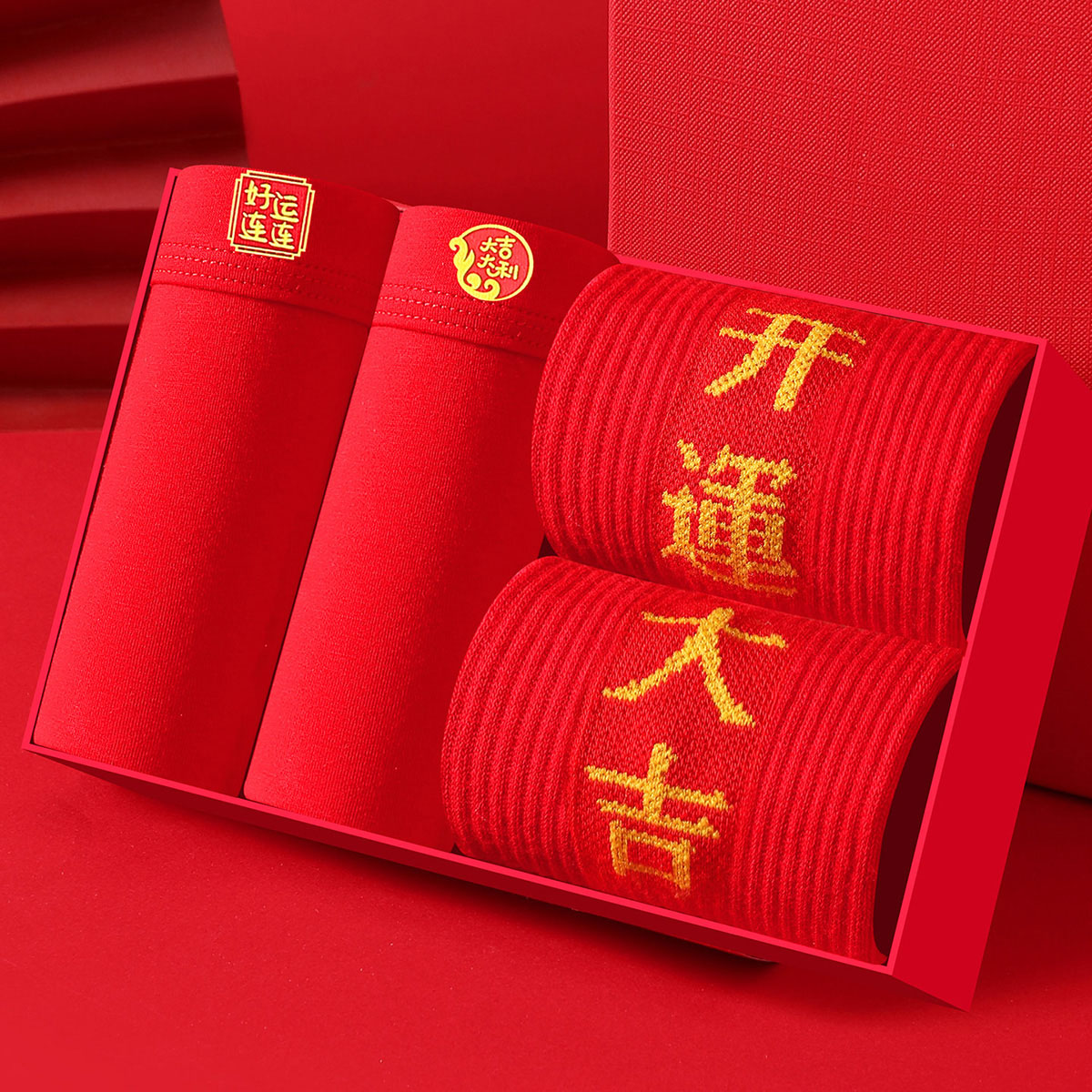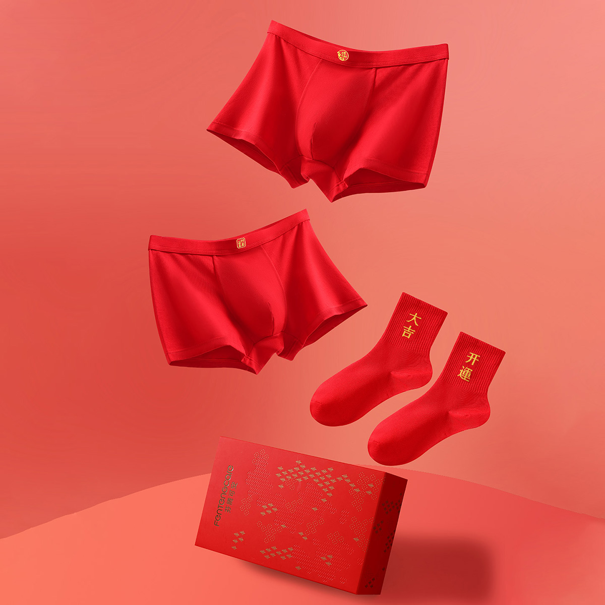 本命年内裤 四角短裤 袜子套装 头男款 头 纯棉抗菌平角裤 芬腾可安男士