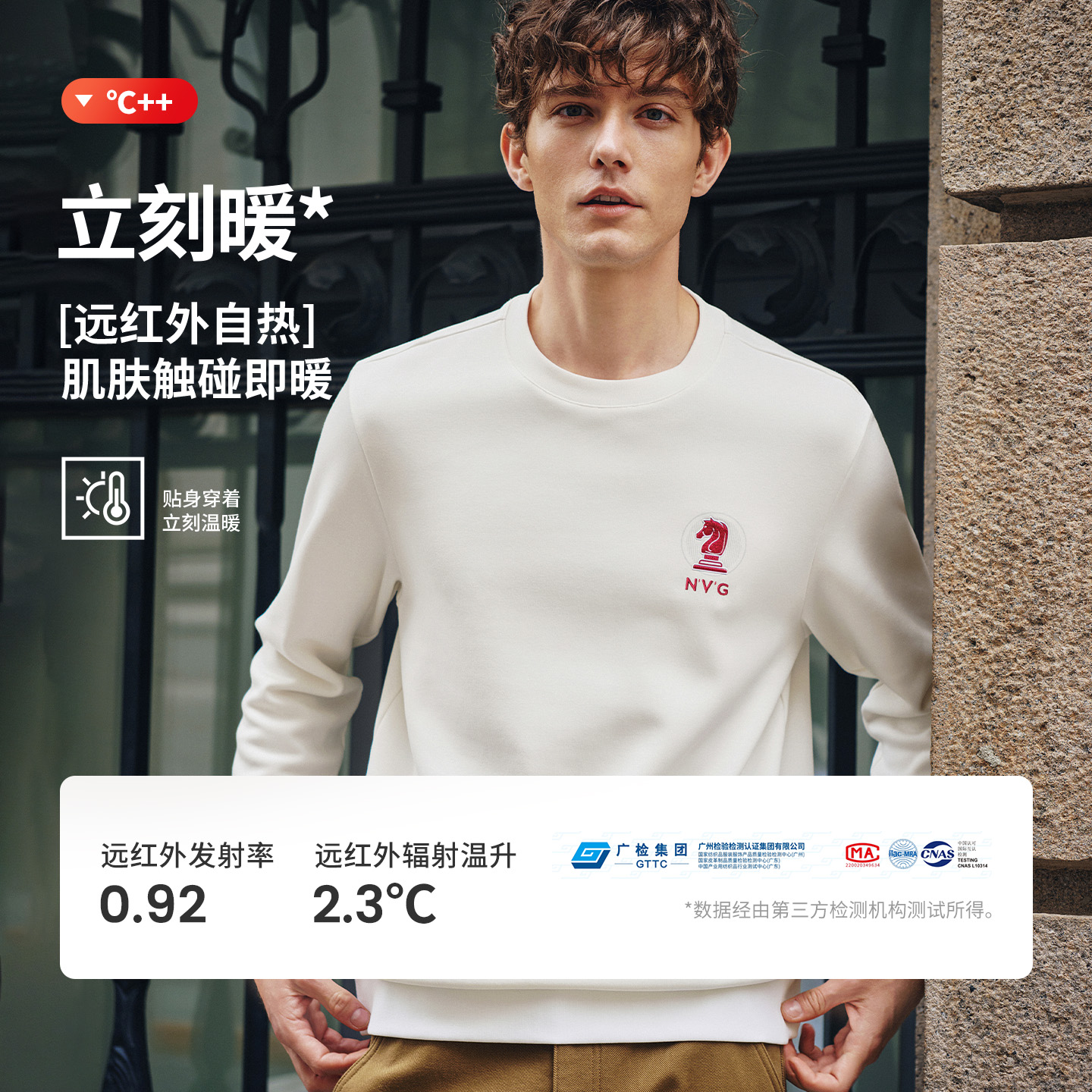 Navigare意大利小帆船白色圆领卫衣男2025秋冬新品 加绒保暖套头衫