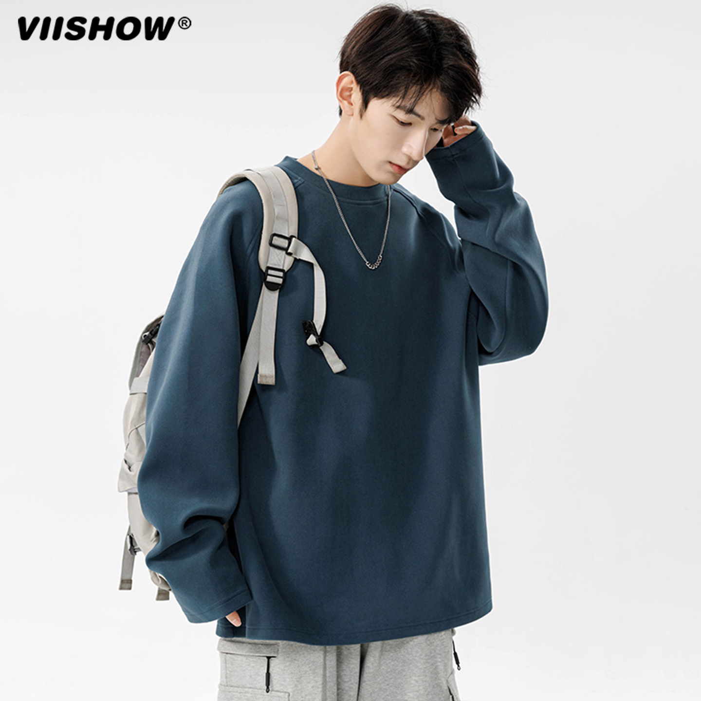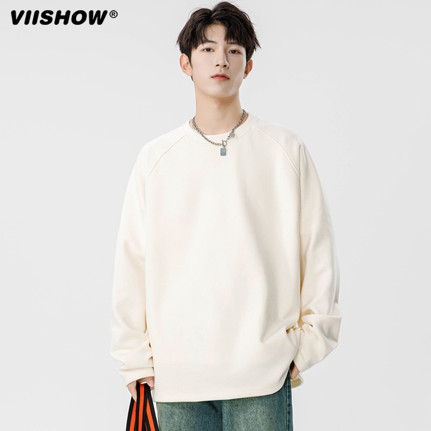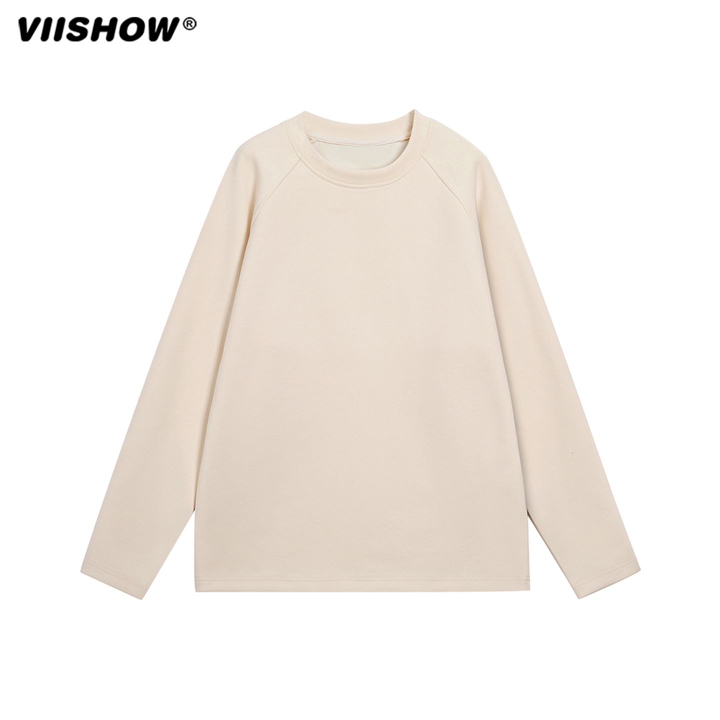 t恤上衣百搭白色圆领卫衣2025新款 长袖 男女秋季 VIISHOW德绒打底衫