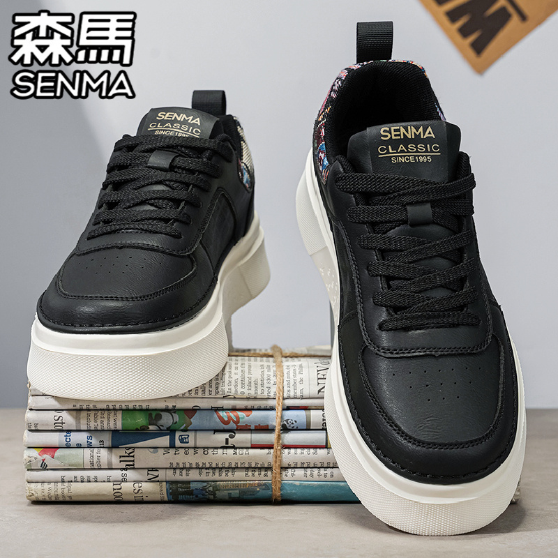 真皮软底增高百搭小白潮鞋 森马男鞋 男士 运动休闲设计小众板鞋 秋季