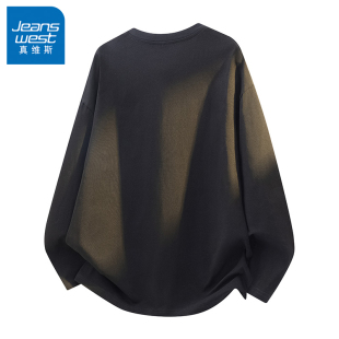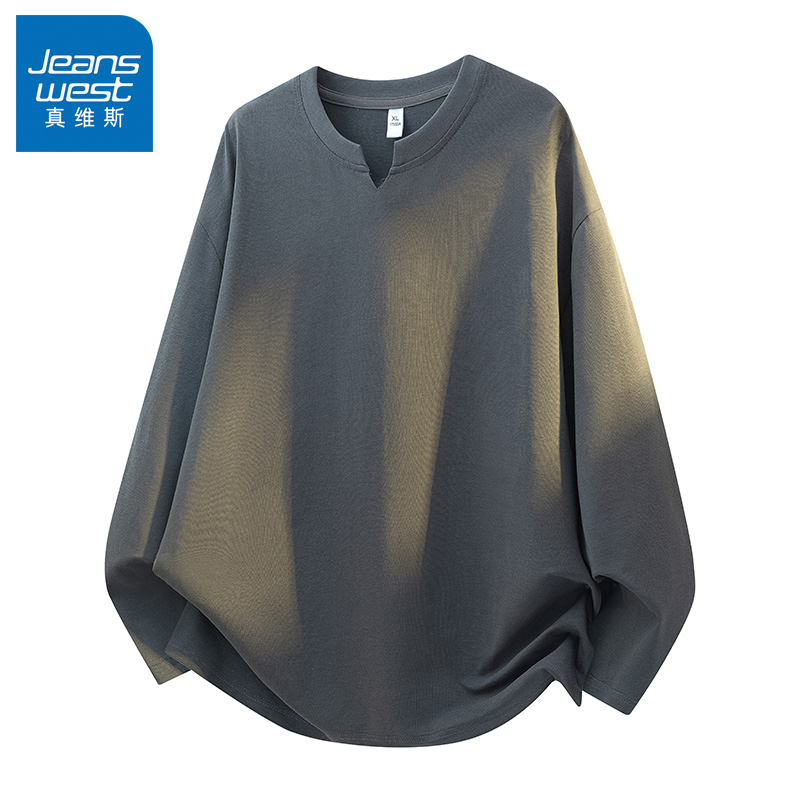 男装 N5真维斯长袖 纯色小V领打底衫 新款 宽松春秋上衣 T恤男2025秋季