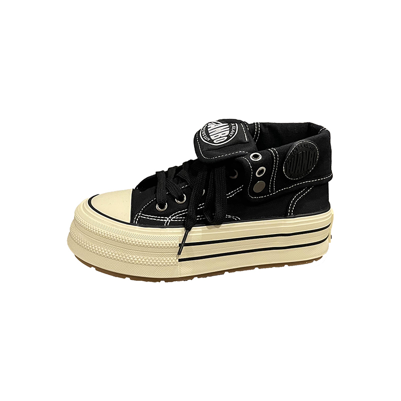 女国潮小众设计感板鞋 GONGJI方头厚底帆布鞋 小白鞋 孟子义同款